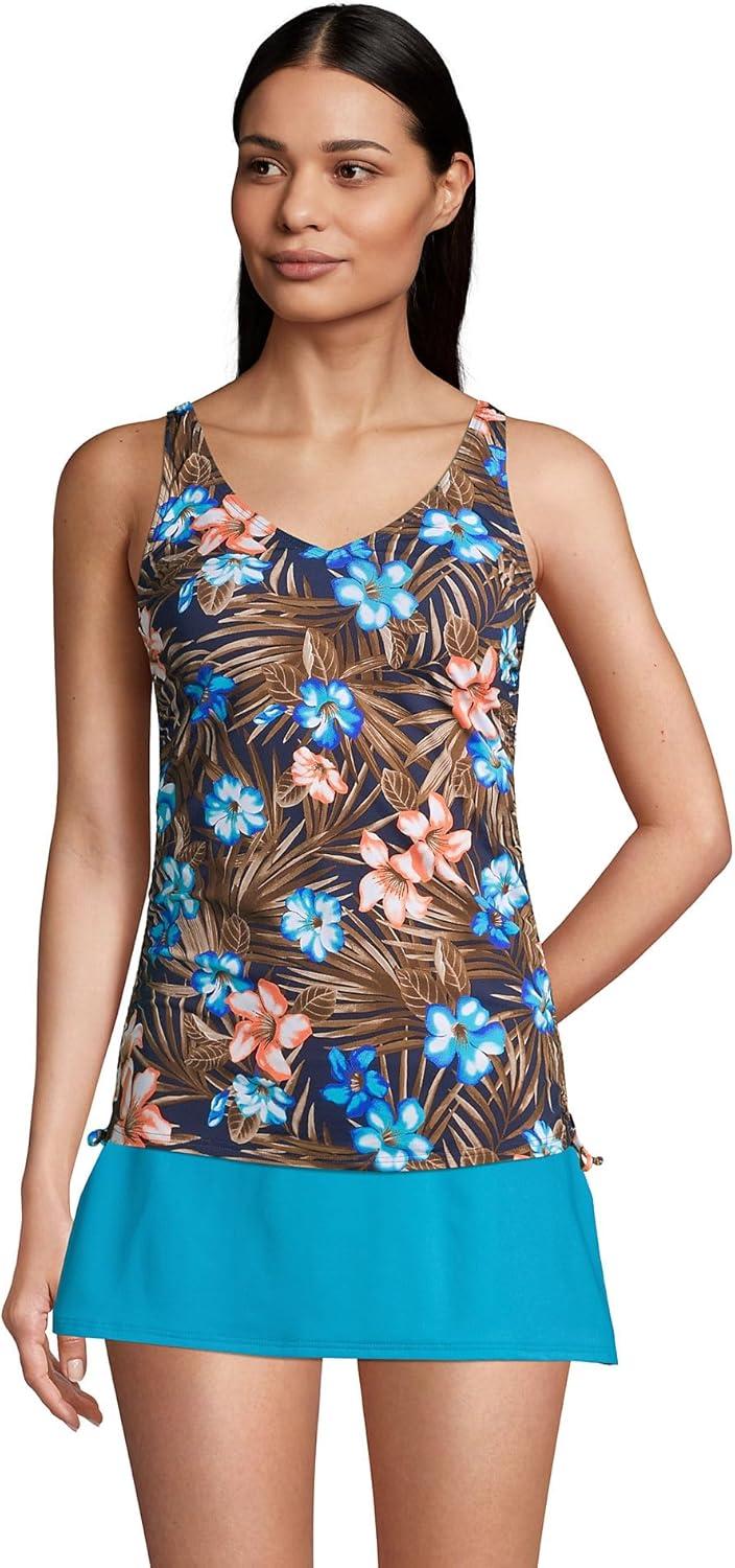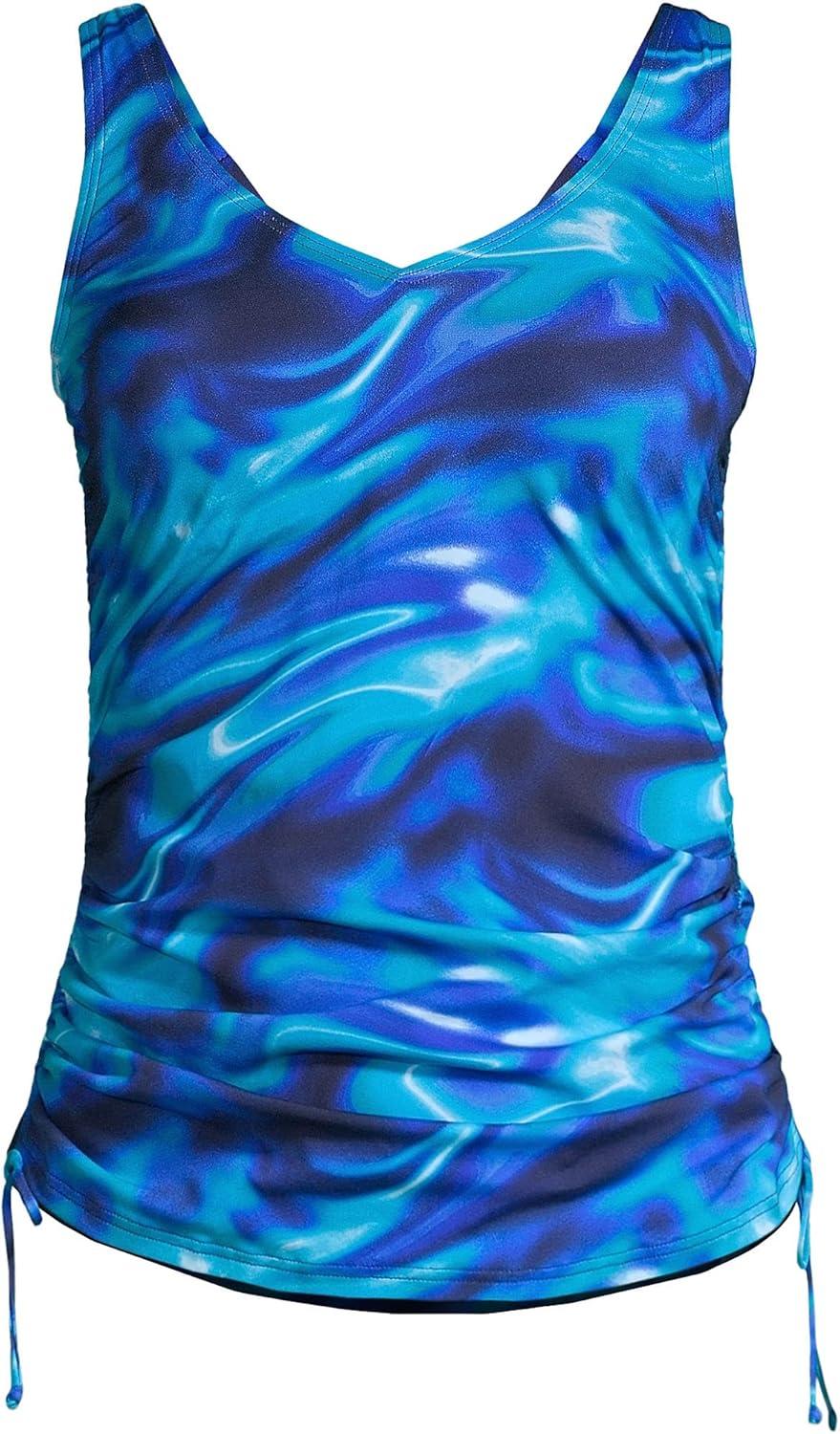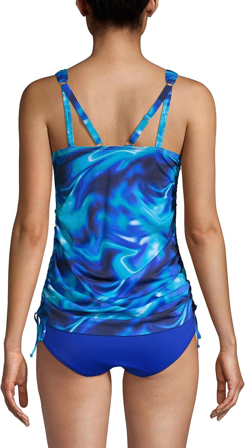 Lands’ End Chlorine Resistant Underwire Tankini Swimsuit Top(Electric Blue Multi/Swirl)