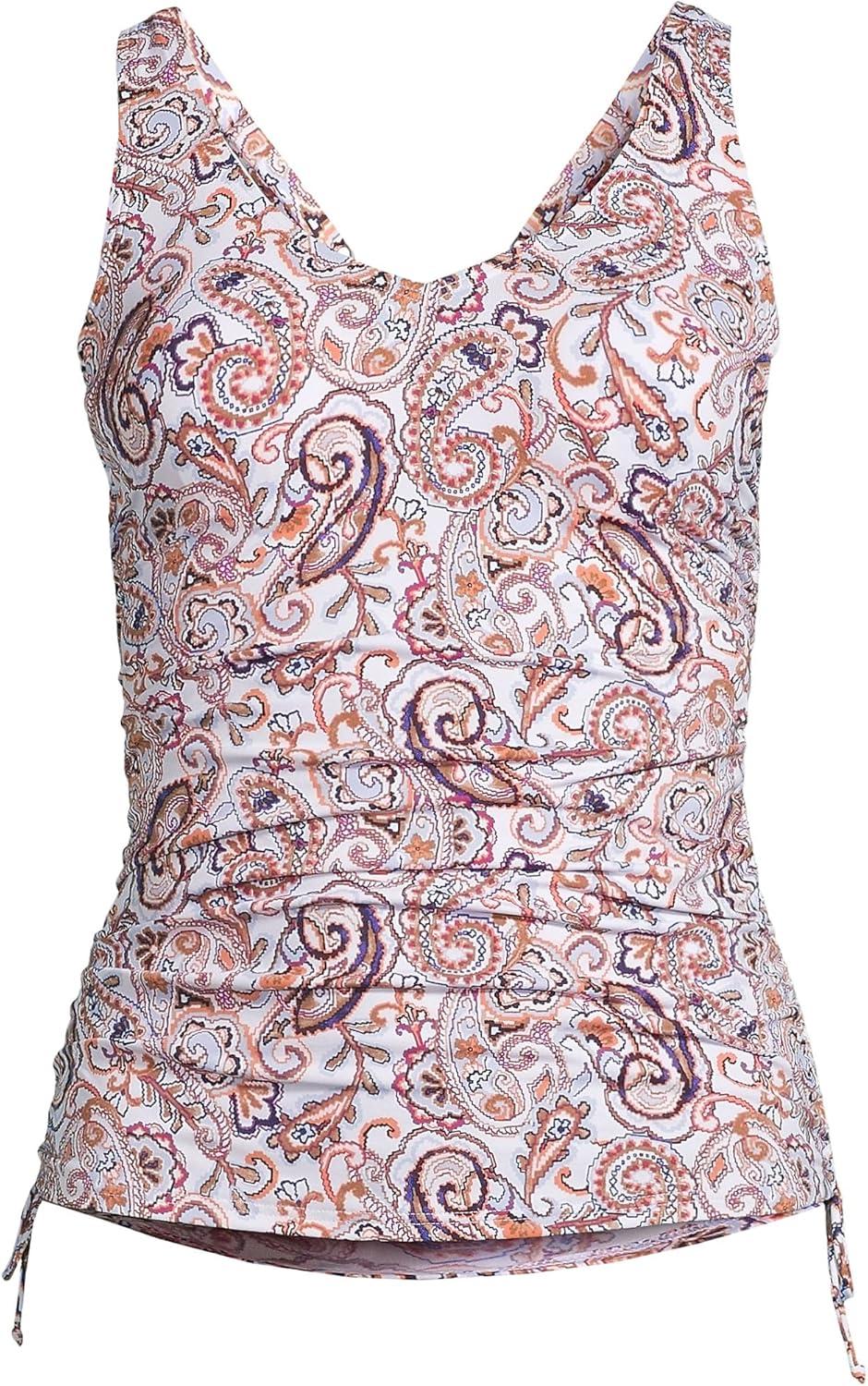 Lands’ End Chlorine Resistant Underwire Tankini Swimsuit Top(White Retro Paisley)