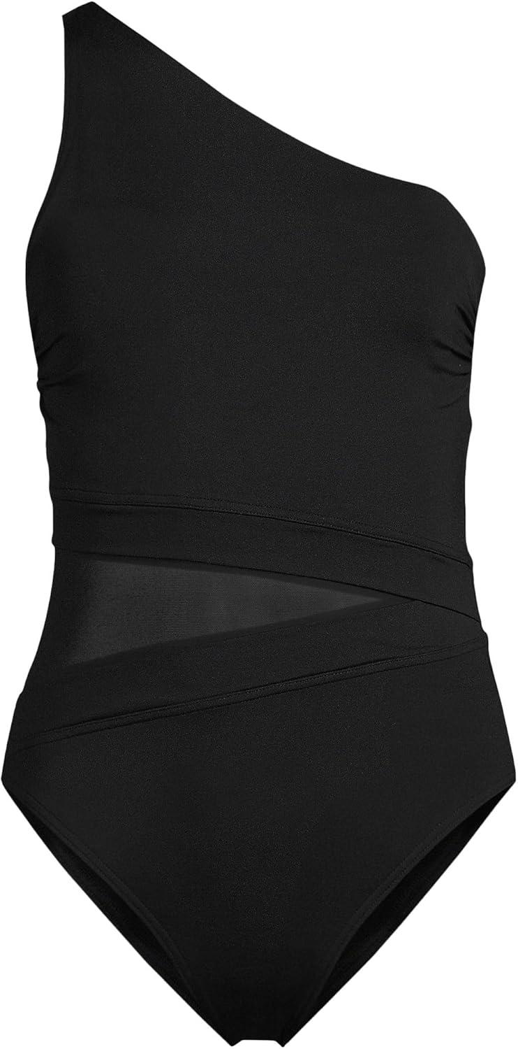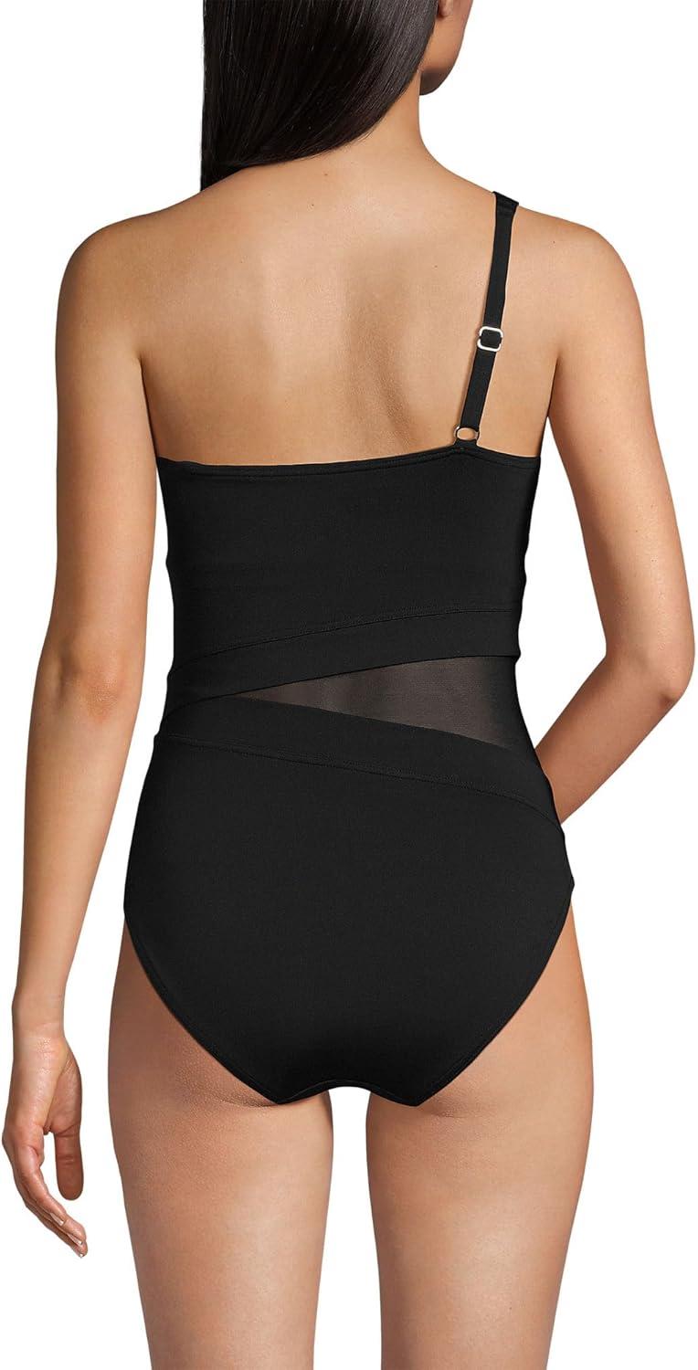 Lands’ End Women’s Chlorine Resistant Smoothing Control Mesh High Leg One Shoulder One Piece Swimsuit(Black)