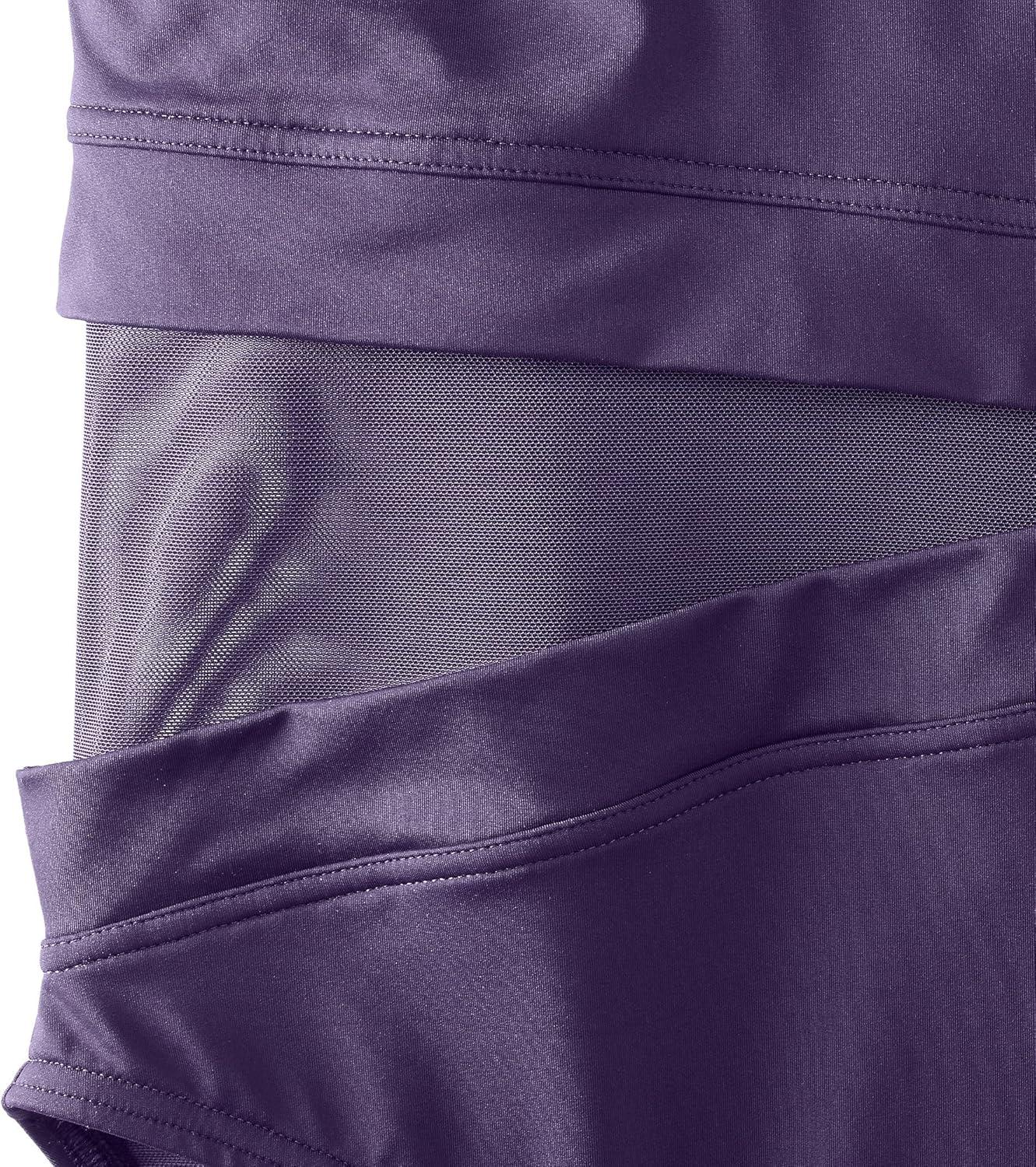 Lands’ End Women’s Chlorine Resistant Smoothing Control Mesh High Leg One Shoulder One Piece Swimsuit(Blackberry)