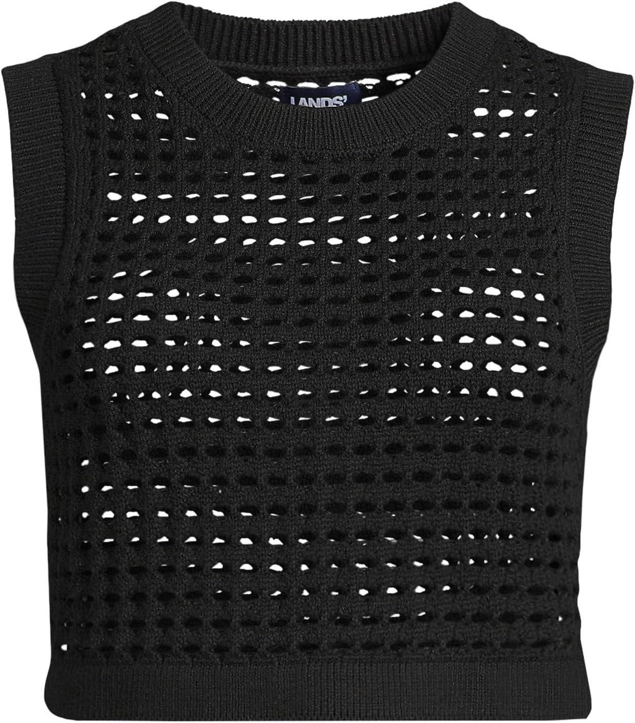 Lands’ End Women’s Cotton Viscose Open Knit Sleeveless Scoop Neck Top Cover Up(Black)