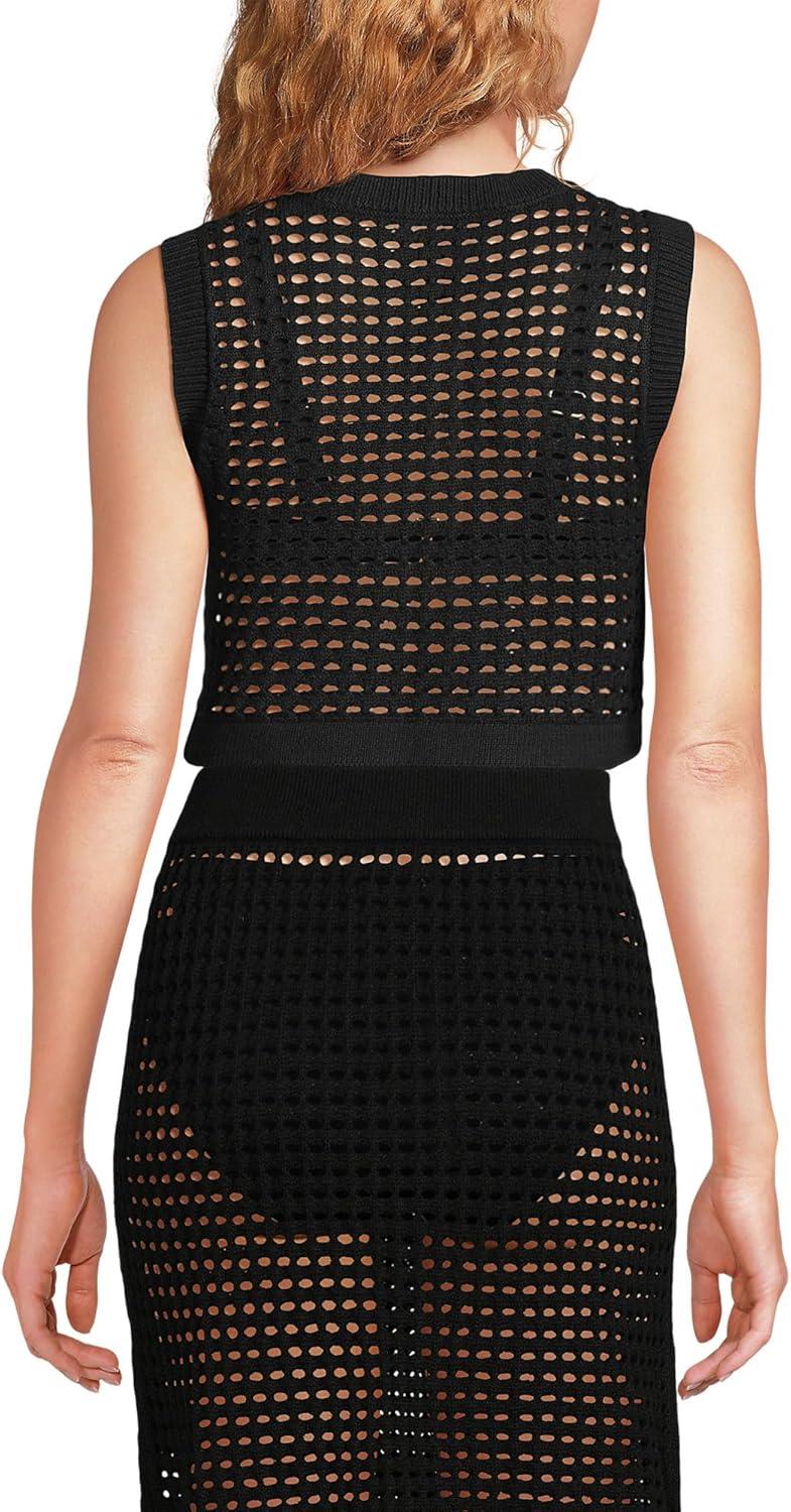 • Lands’ End Women’s Cotton Viscose Open Knit Sleeveless Scoop Neck Top Cover Up(Black)