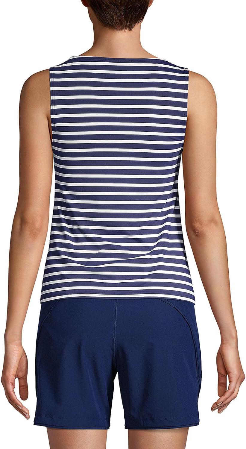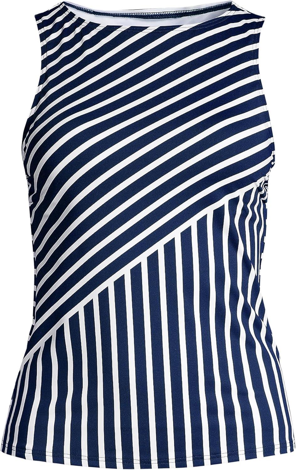 Lands’ End Women’s High Neck UPF 50 Modest Tankini Top Swimsuit(Deep Sea Mixed Diagonal Stripe)
