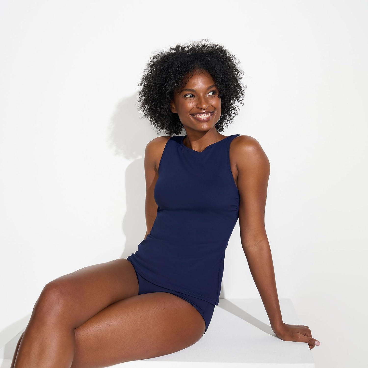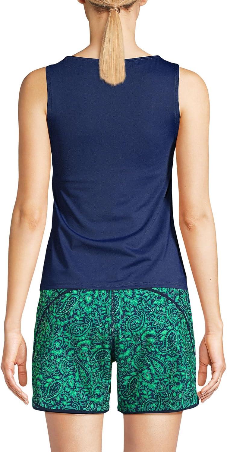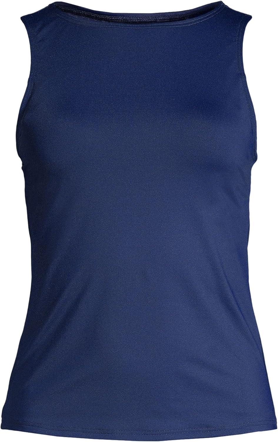 Lands’ End Women’s High Neck UPF 50 Modest Tankini Top Swimsuit(Deep Sea Navy)