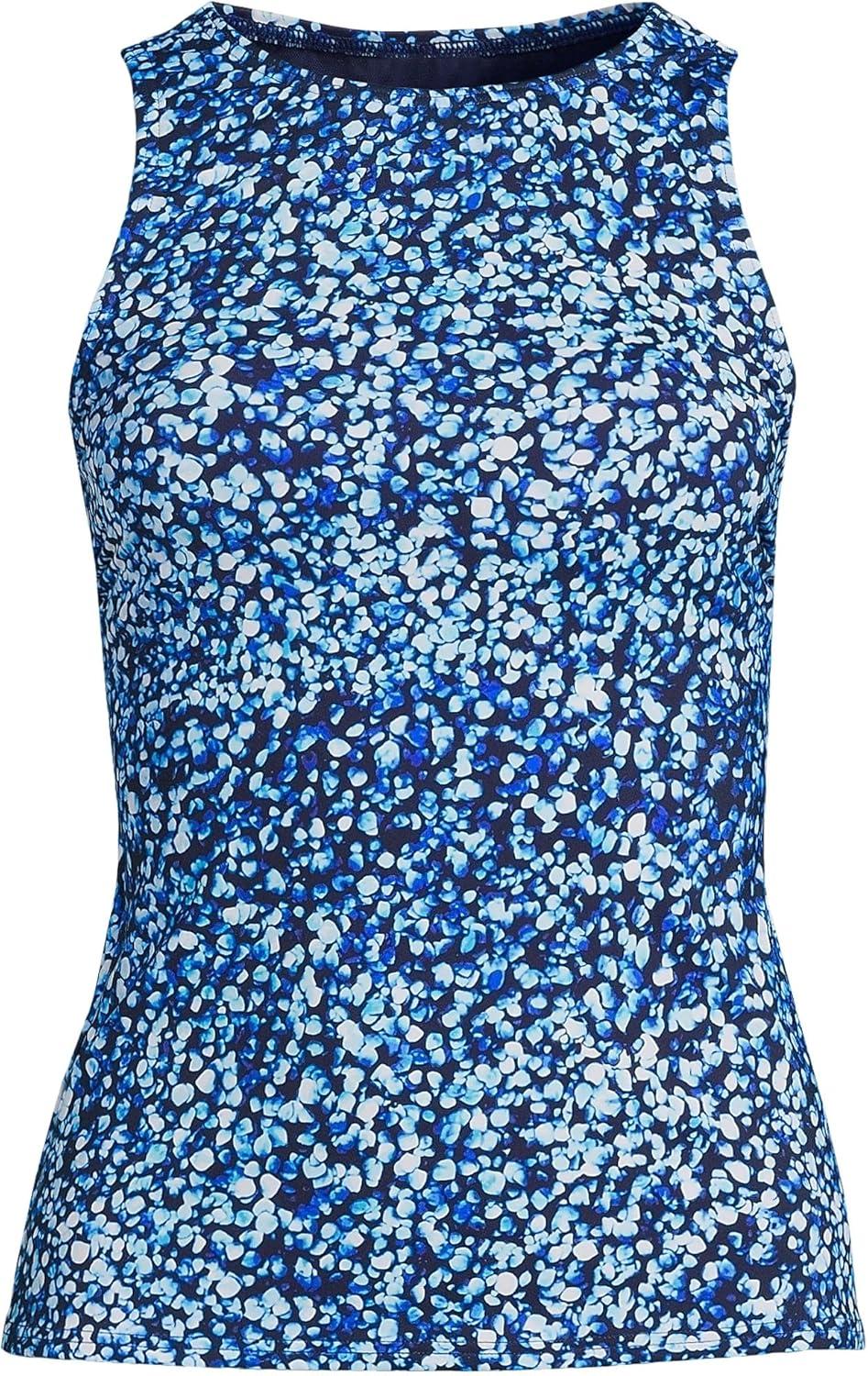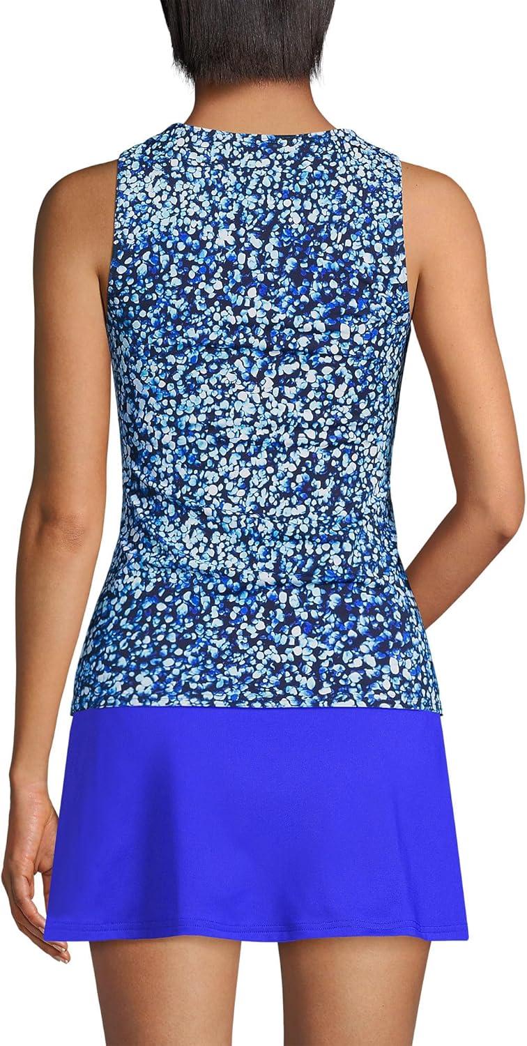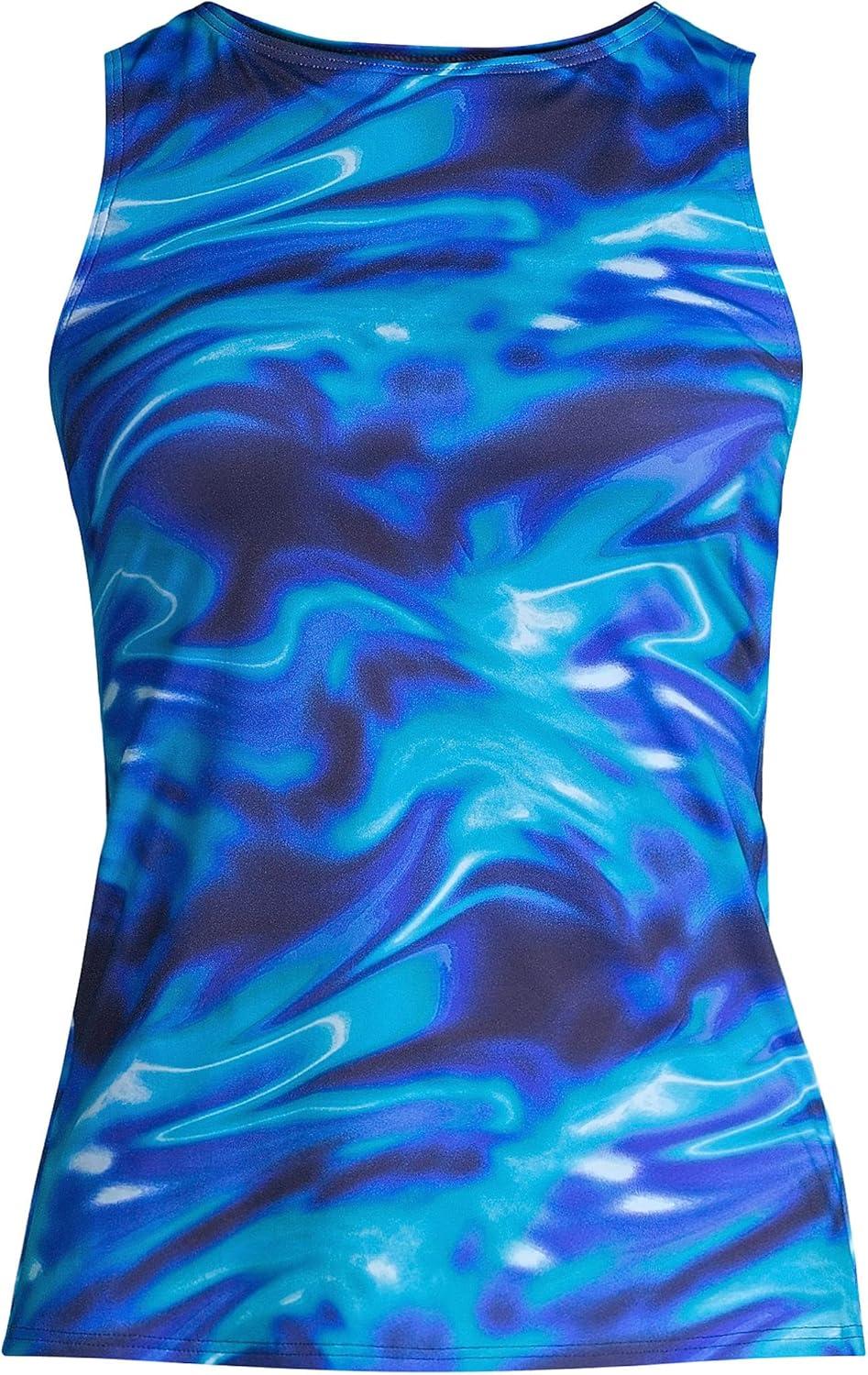 Lands’ End Women’s High Neck UPF 50 Modest Tankini Top Swimsuit(Electric Blue Multi/Swirl)