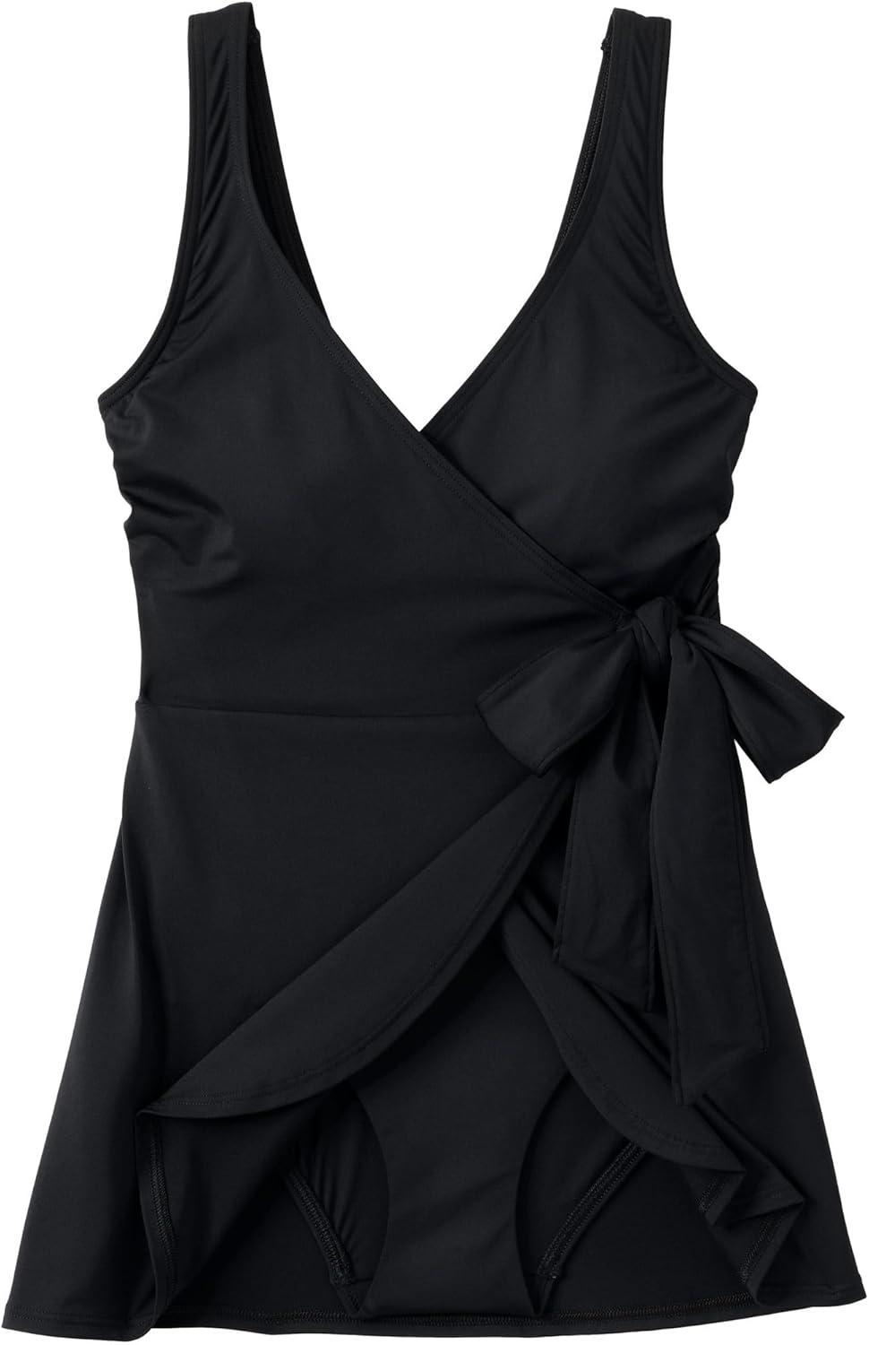 Lands’ End Women’s Side Tie Mini Swim Dress Swimsuit(Black)