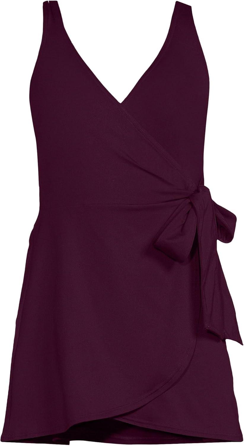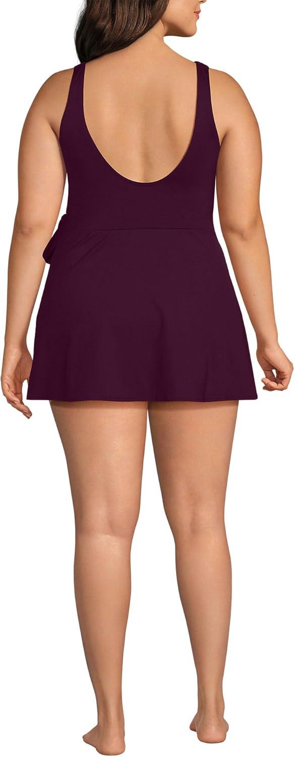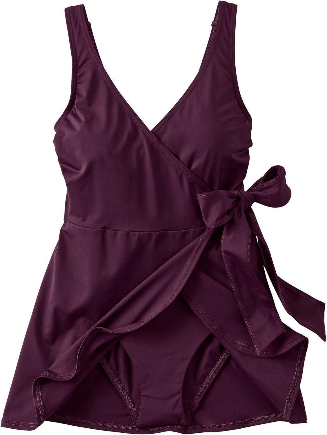 Lands’ End Women’s Side Tie Mini Swim Dress Swimsuit(Dark Wine)