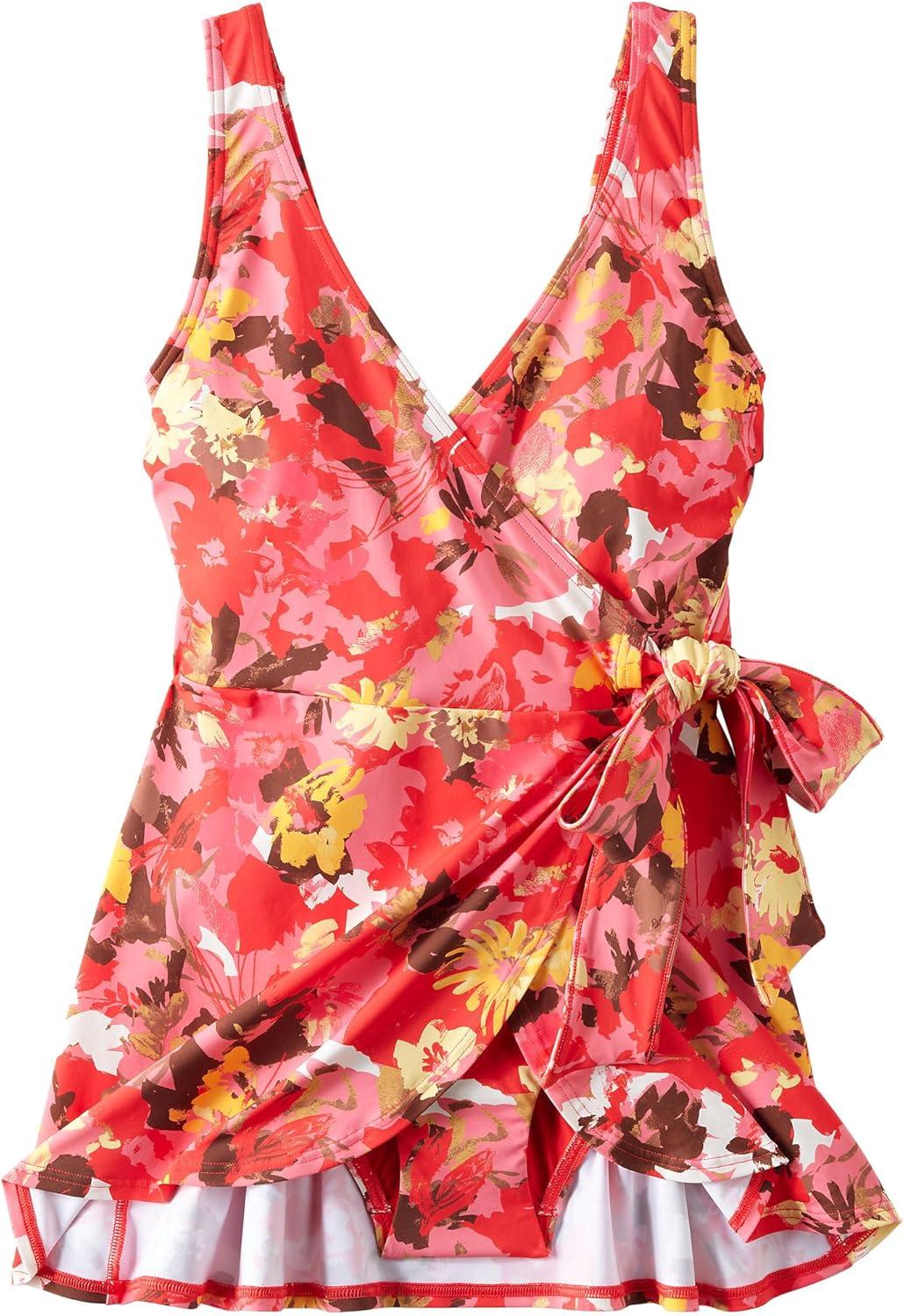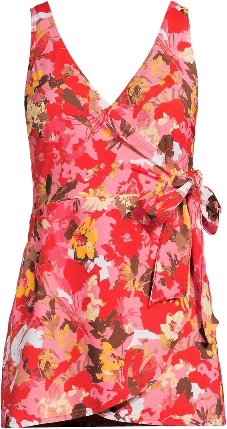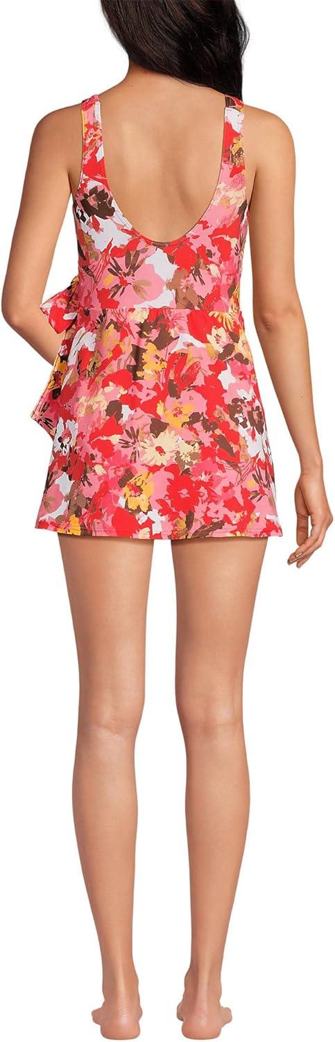 Lands’ End Women’s Side Tie Mini Swim Dress Swimsuit(Daylily Red Multi Floral)