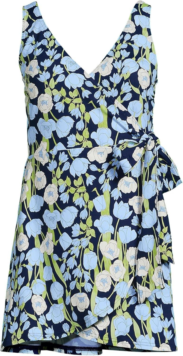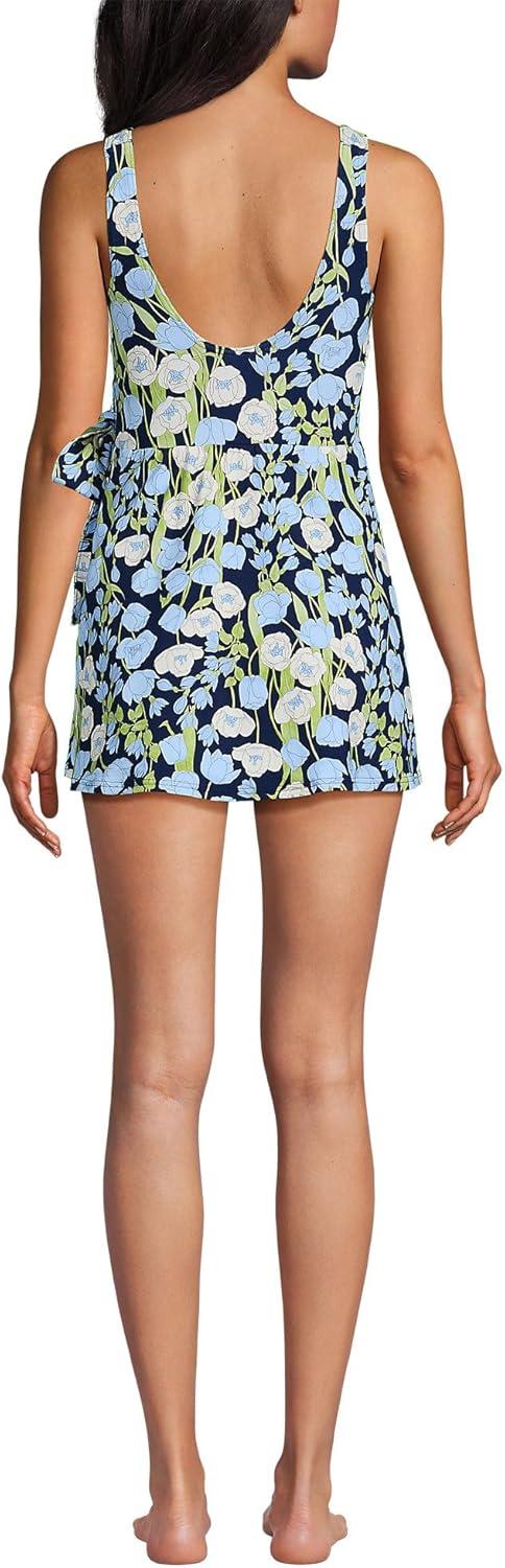 Lands’ End Women’s Side Tie Mini Swim Dress Swimsuit(Deep Sea Navy Poetic Floral)