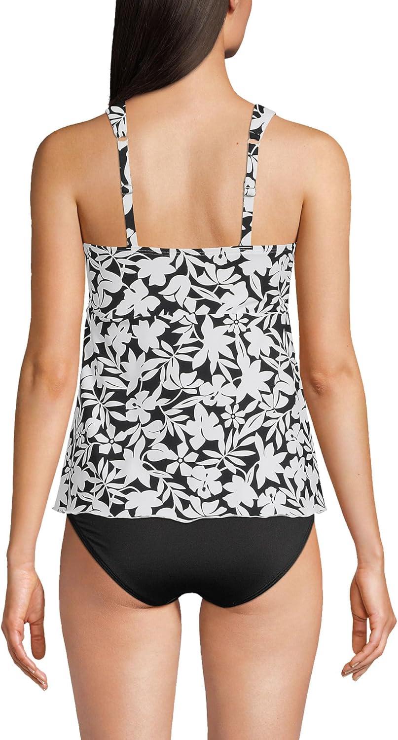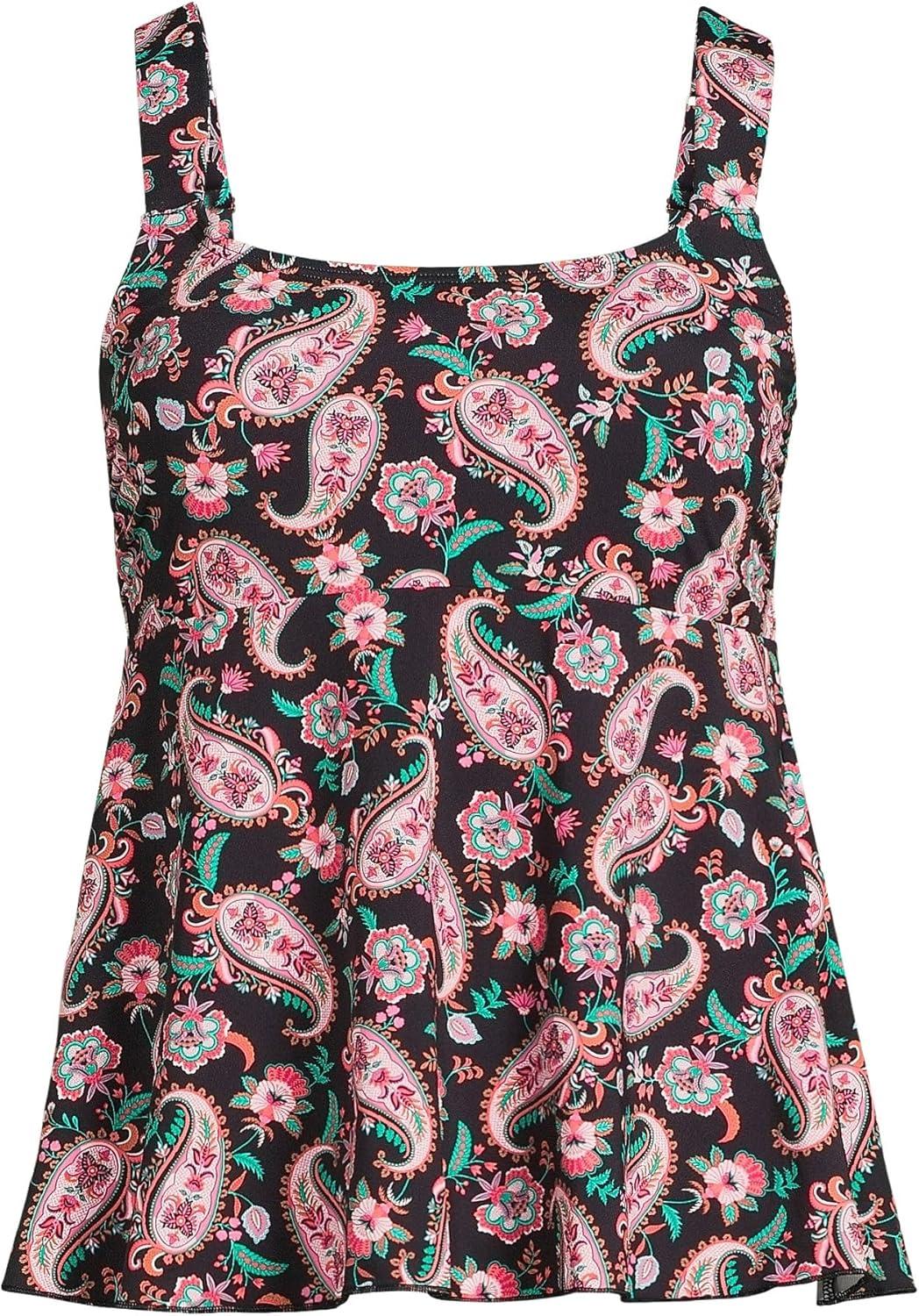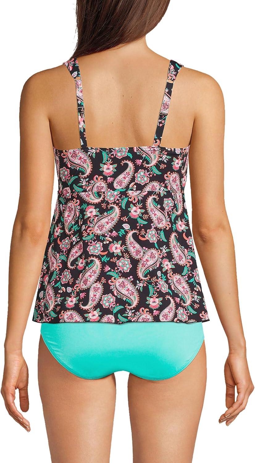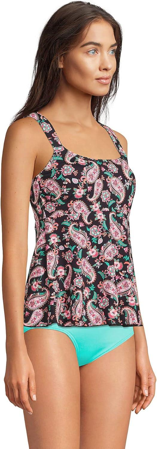 Lands’ End Women’s Adjustable Scoop Neck Flutter Tankini Top(Black Multi Paisley Floral)