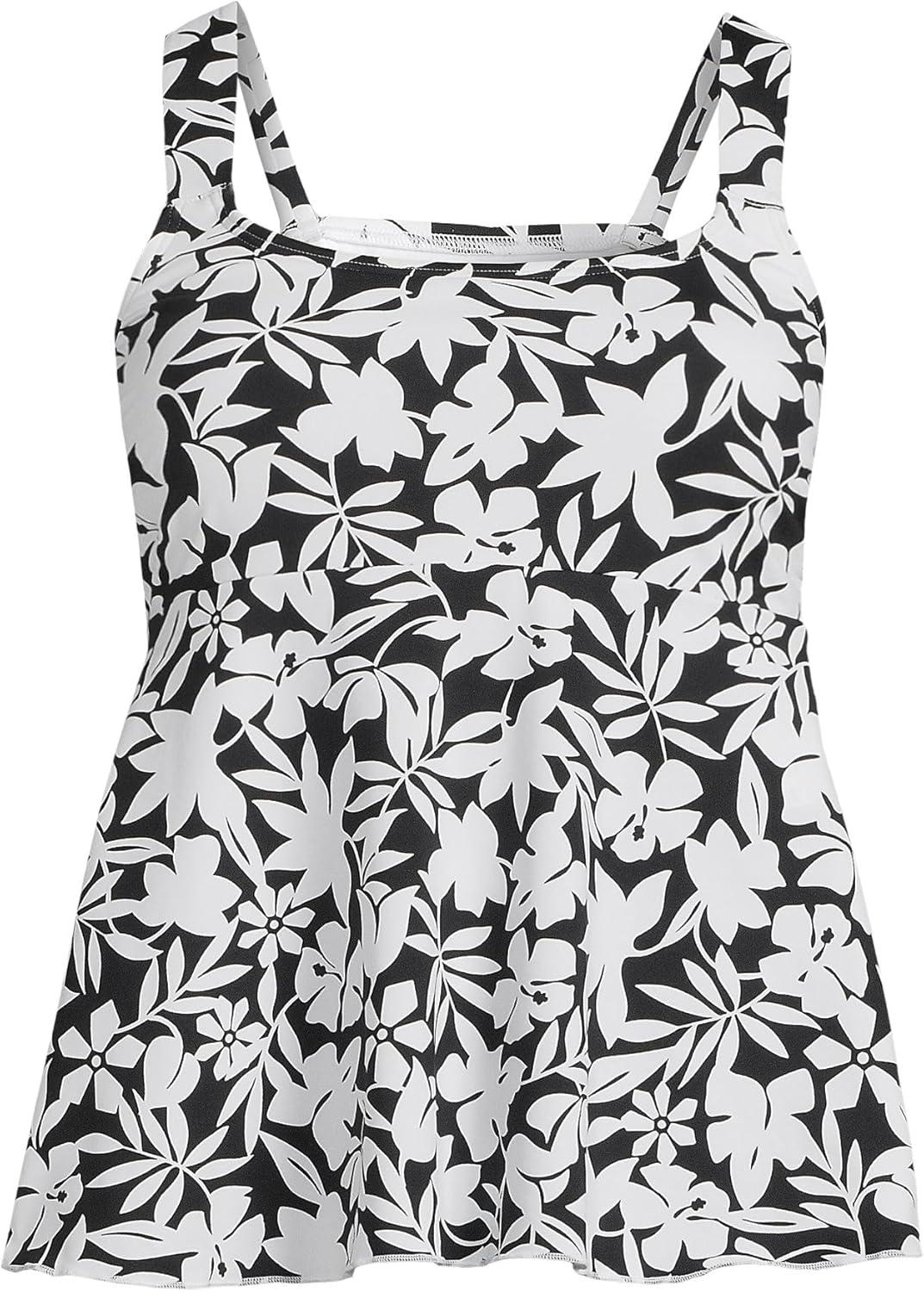 Lands’ End Women’s Adjustable Scoop Neck Flutter Tankini Top(Black Havana Floral)