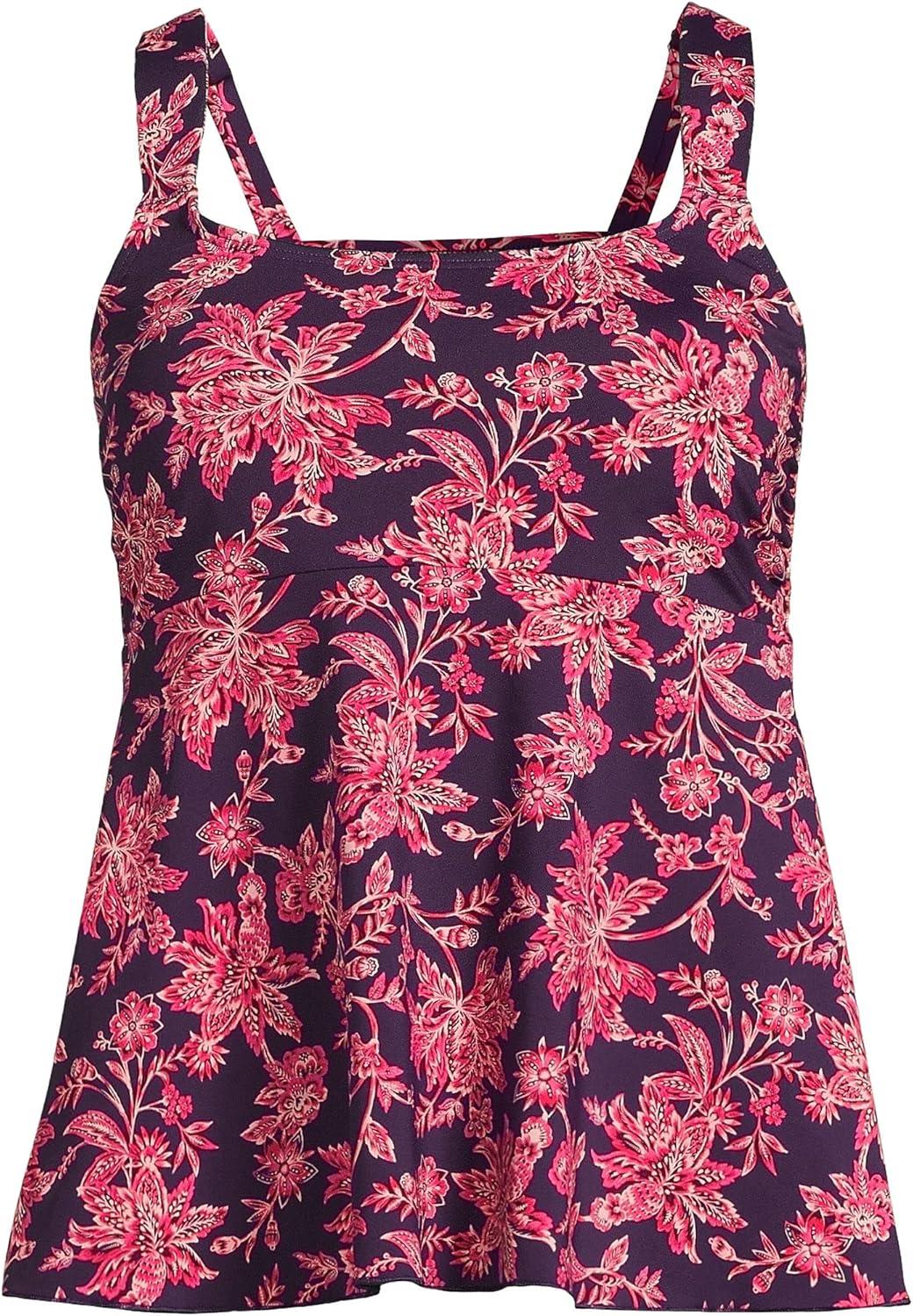 Lands’ End Women’s Adjustable Scoop Neck Flutter Tankini Top(Blackberry/Strawberry Jacobean)