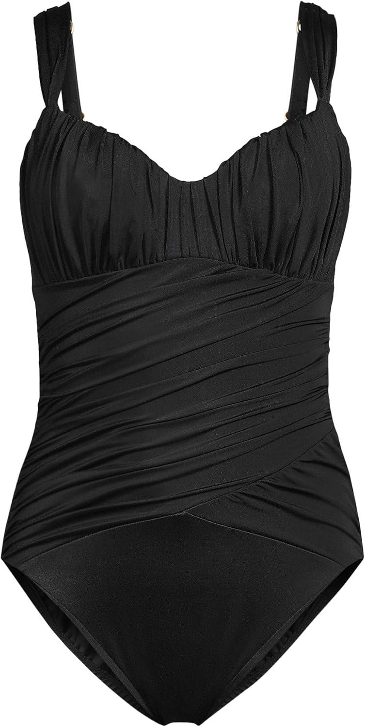 • Lands’ End Women’s SlenderSuit Wrap One Piece Swimsuit(Black)
