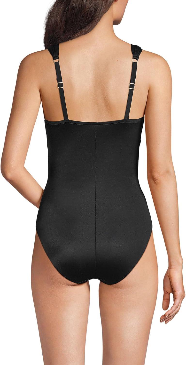 Lands’ End Women’s SlenderSuit Wrap One Piece Swimsuit(Black)