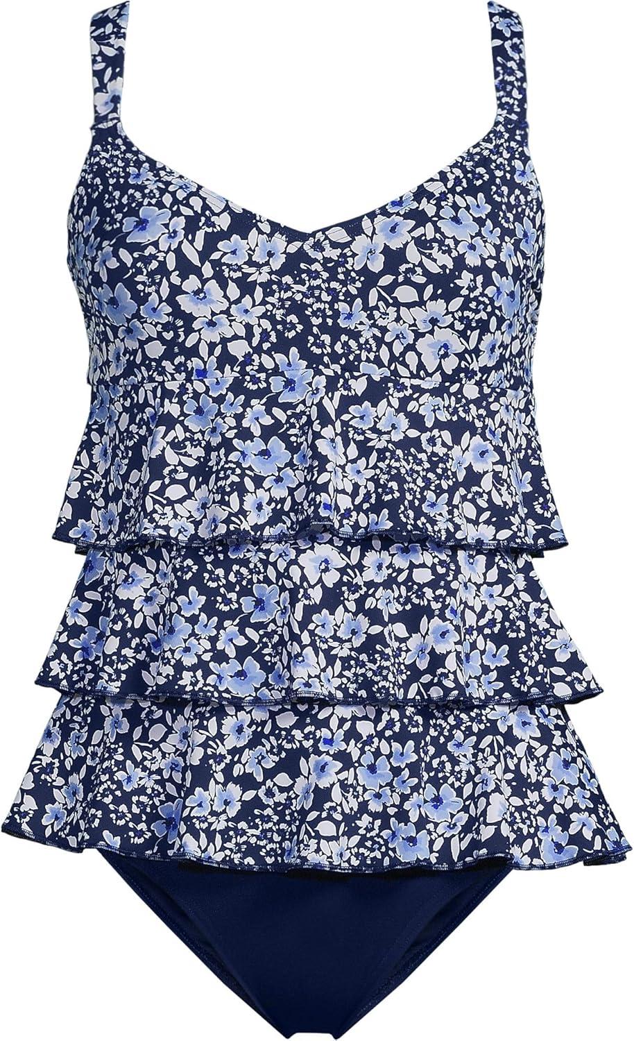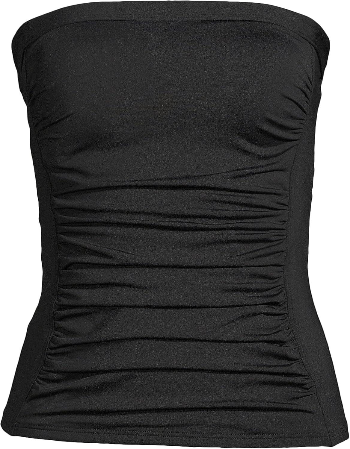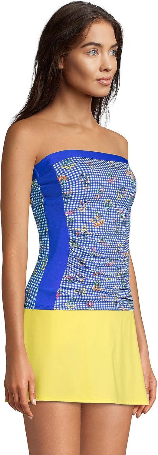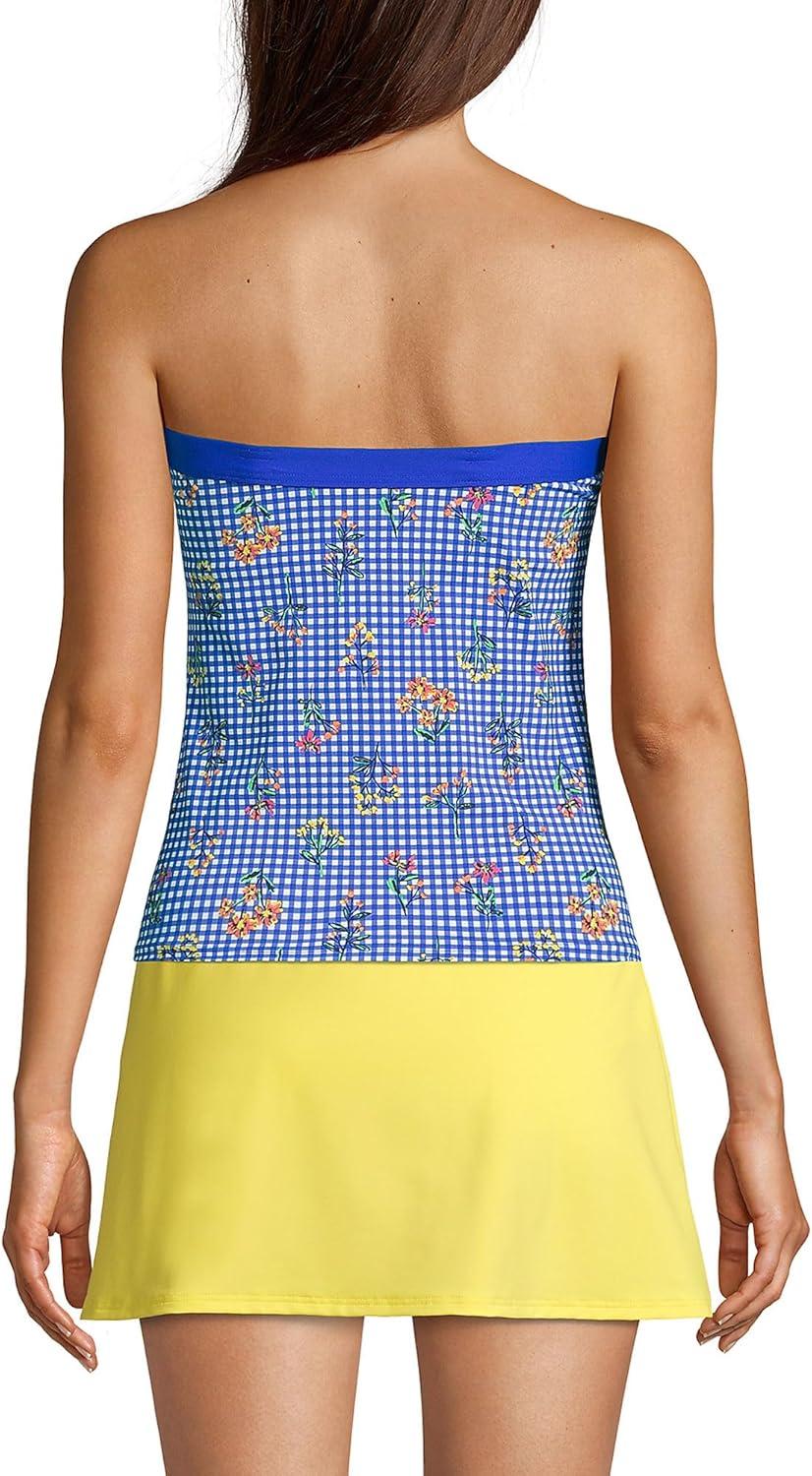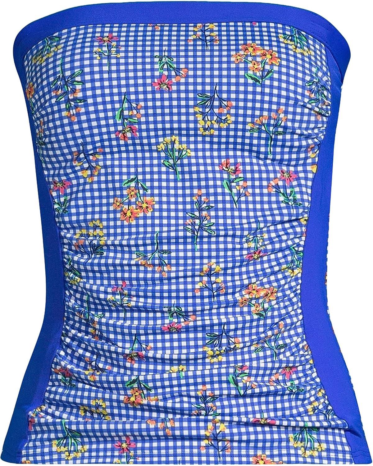 • Lands’ End Women’s Strapless Bandeau Tankini Top Swimsuit with Removable and Adjustable Straps(Blue)
