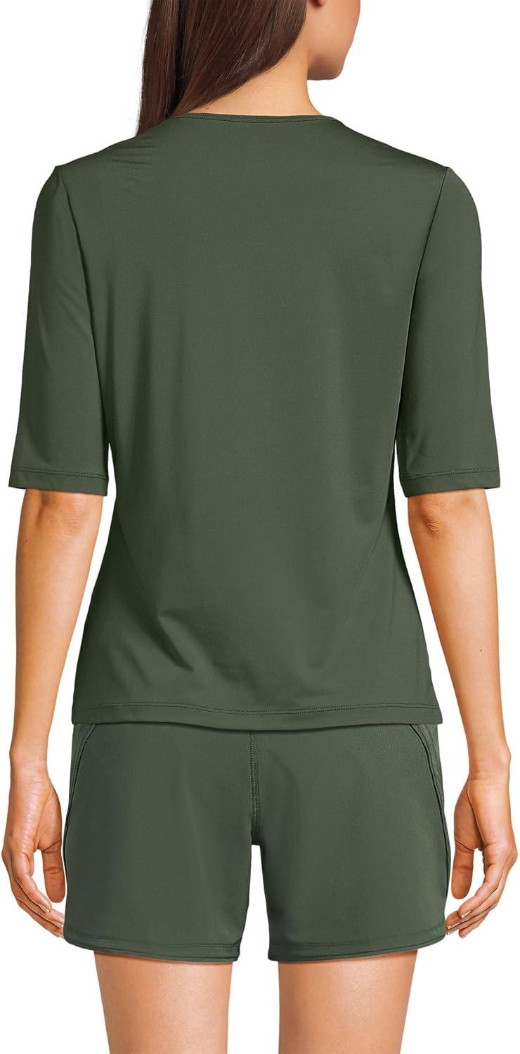 Lands’ End Women’s Sunshade UPF 50 Elbow Sleeve Relaxed Rash Guard(Rich Olive Green)