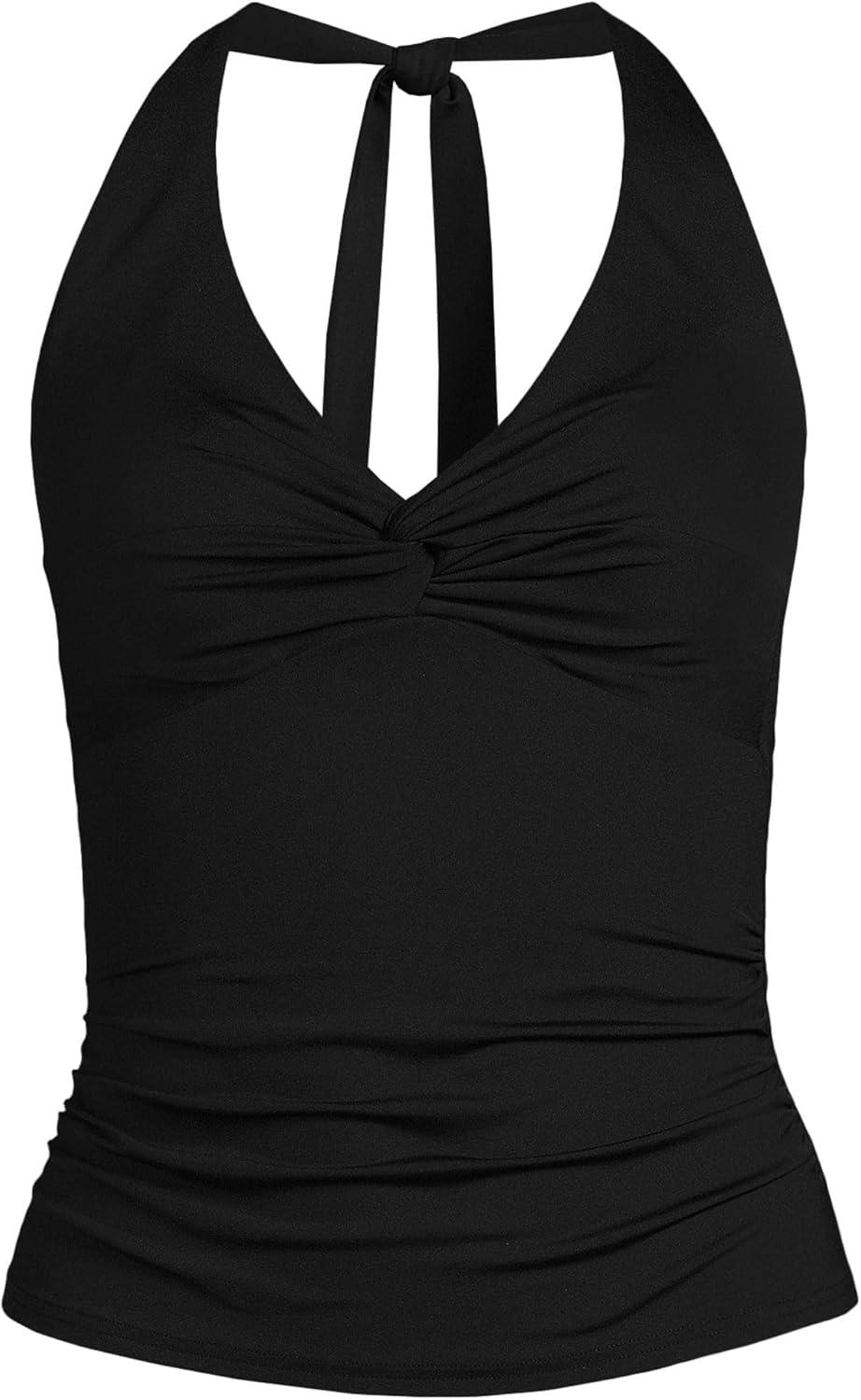 Lands’ End Women’s Twist Halter Tankini Top(Black)