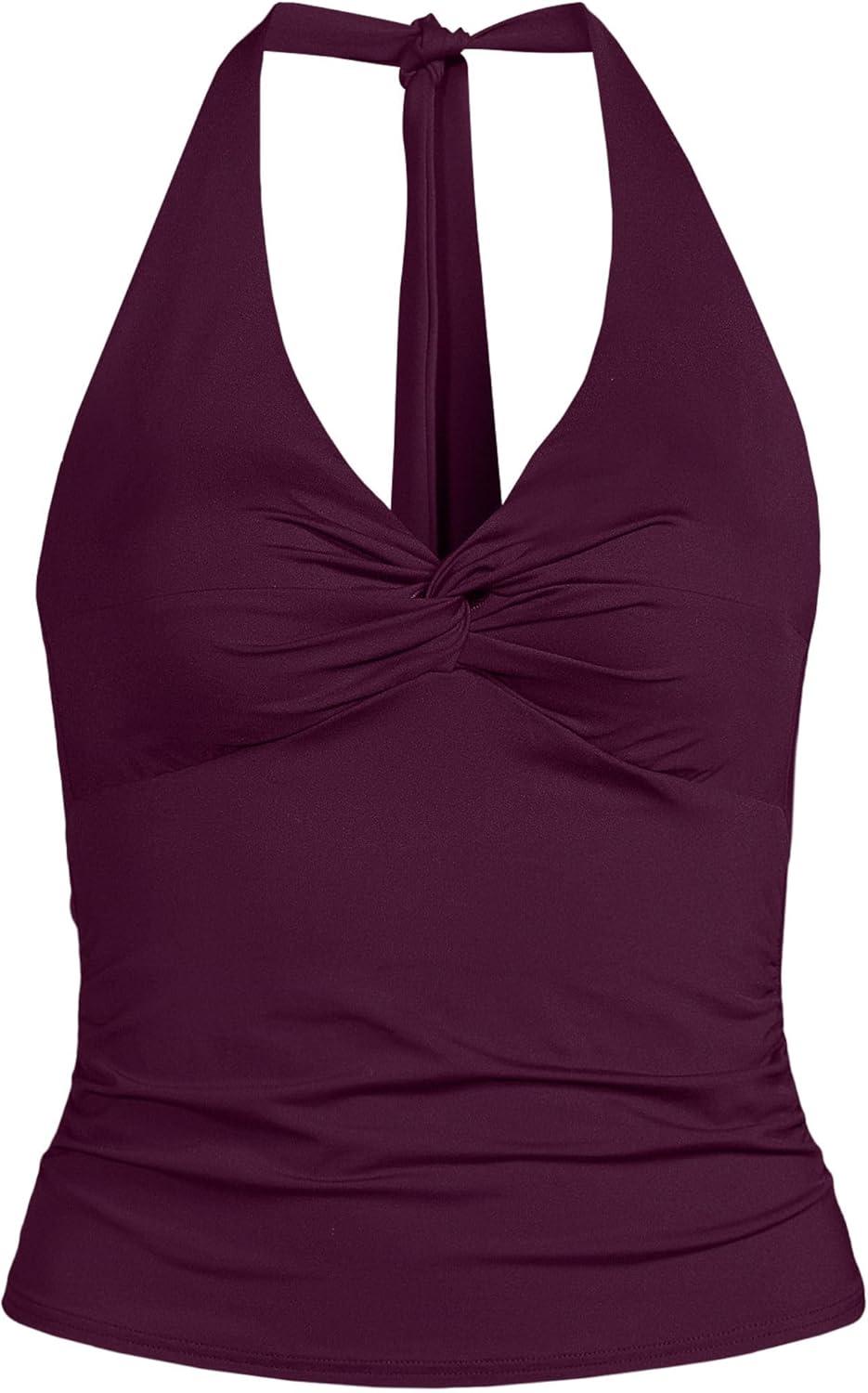 Lands’ End Women’s Twist Halter Tankini Top(Dark Wine)