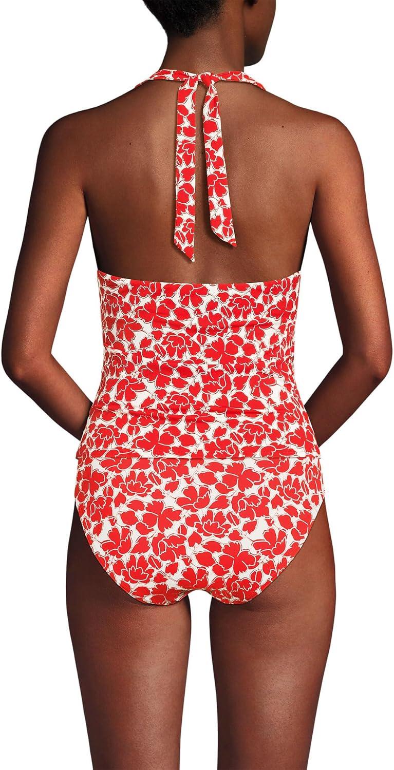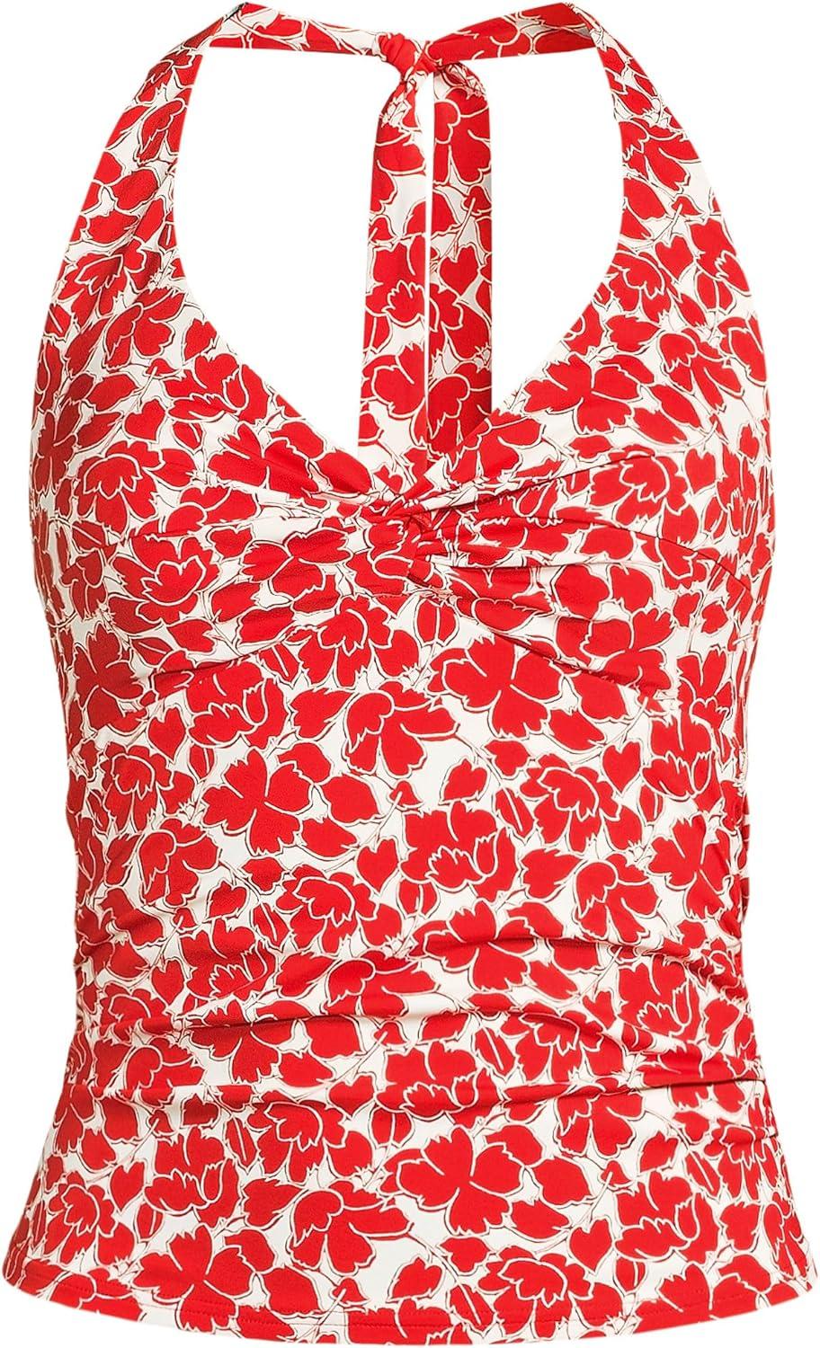 Lands’ End Women’s Twist Halter Tankini Top(Daylily Red Tossed Floral)