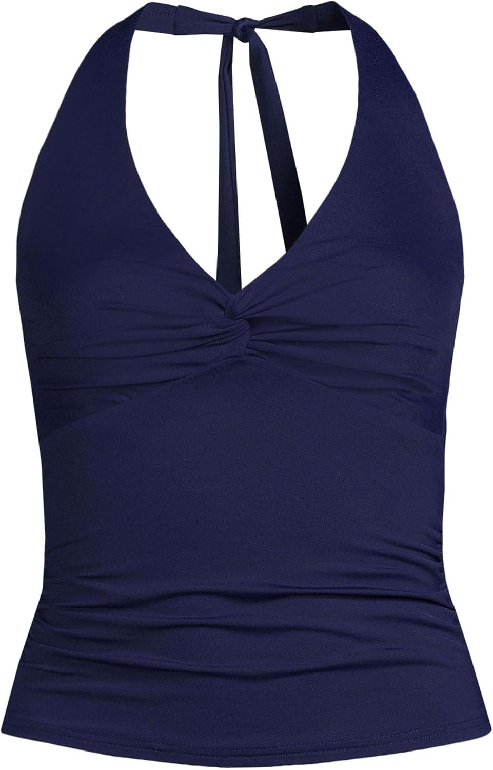 Lands’ End Women’s Twist Halter Tankini Top(Deep Sea Navy)