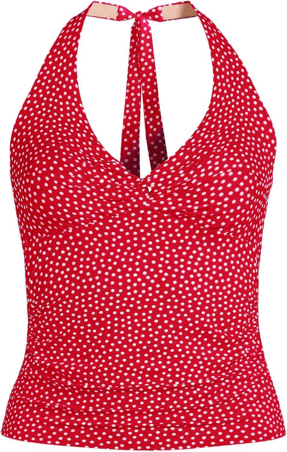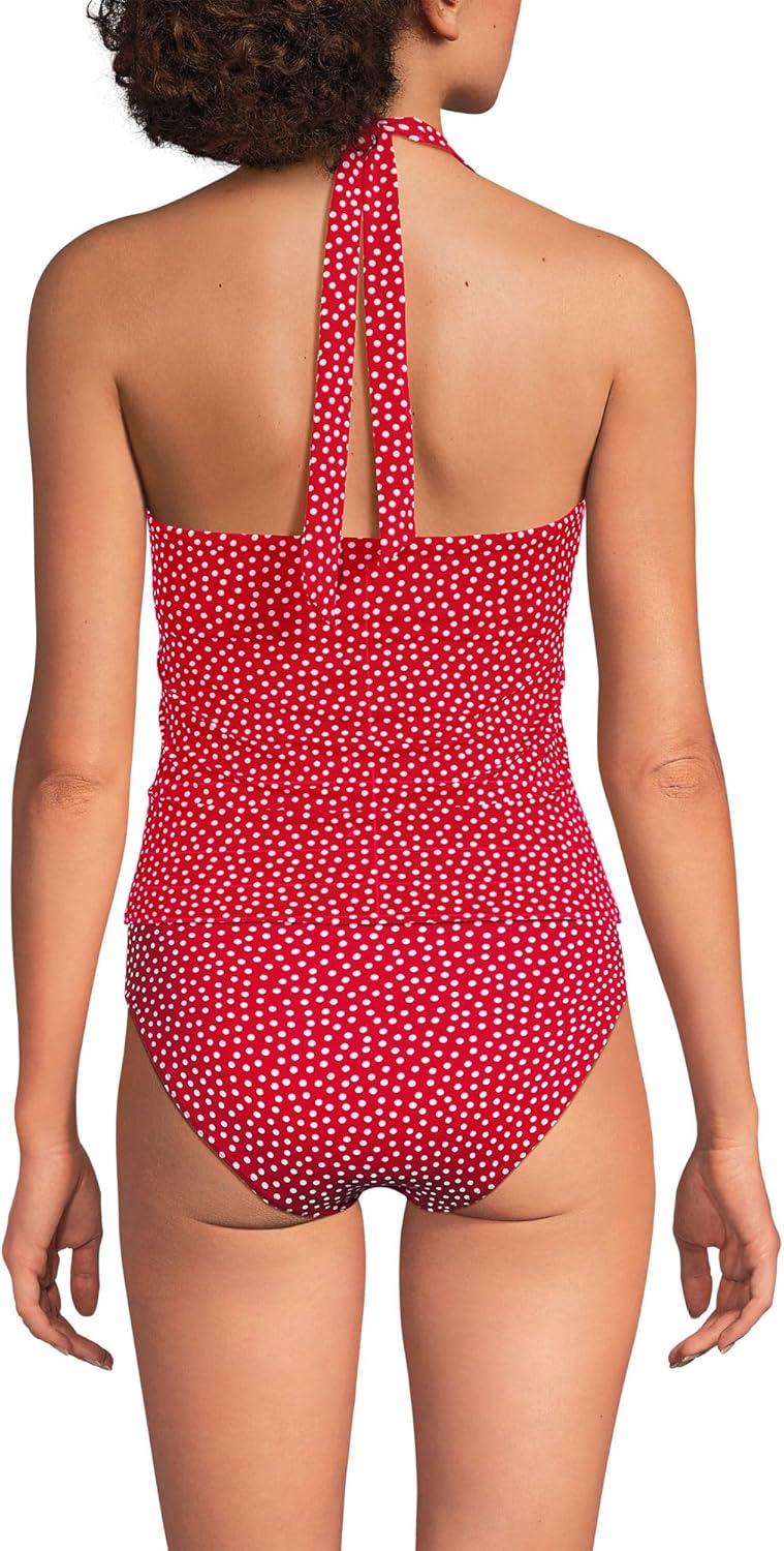 Lands’ End Women’s Twist Halter Tankini Top(Red Mini Dot)