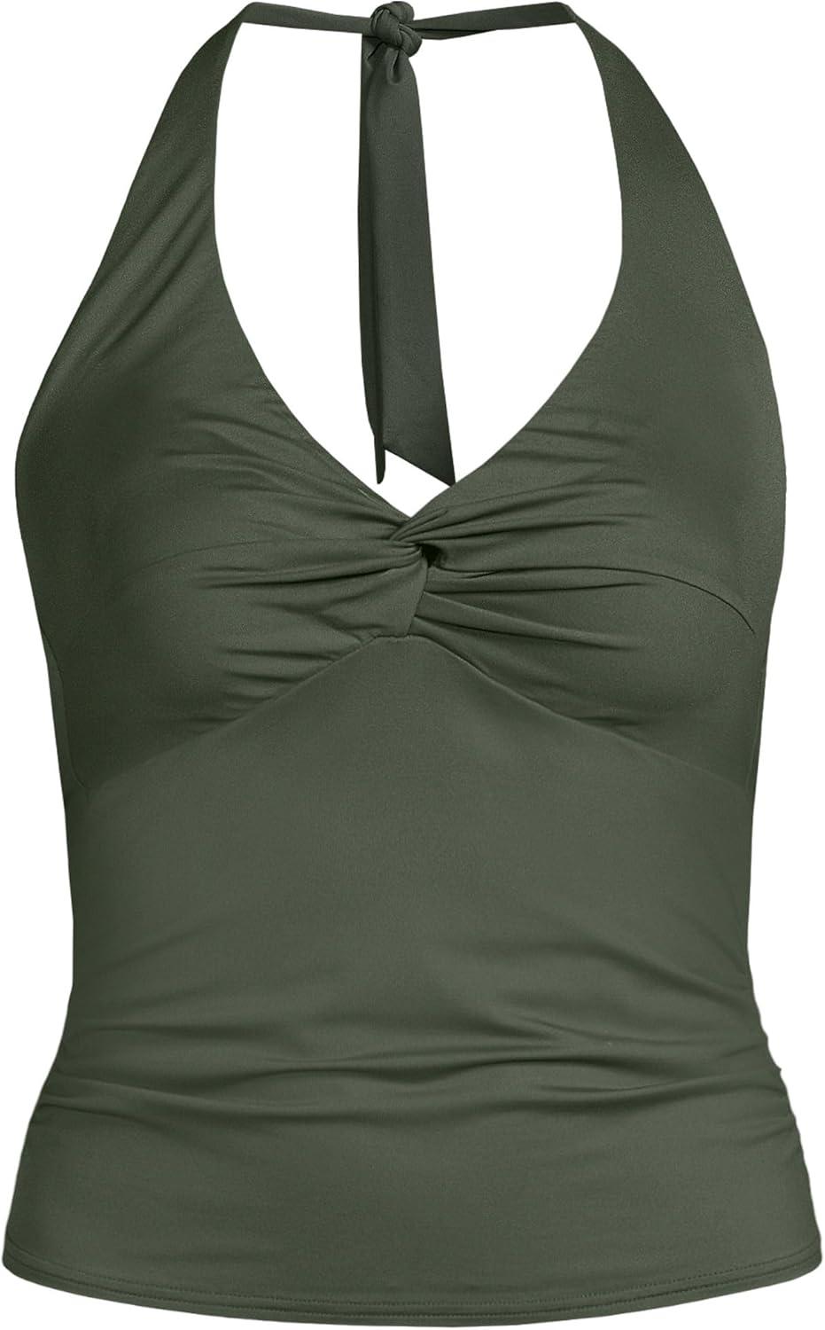 Lands’ End Women’s Twist Halter Tankini Top(Rich Olive Green)