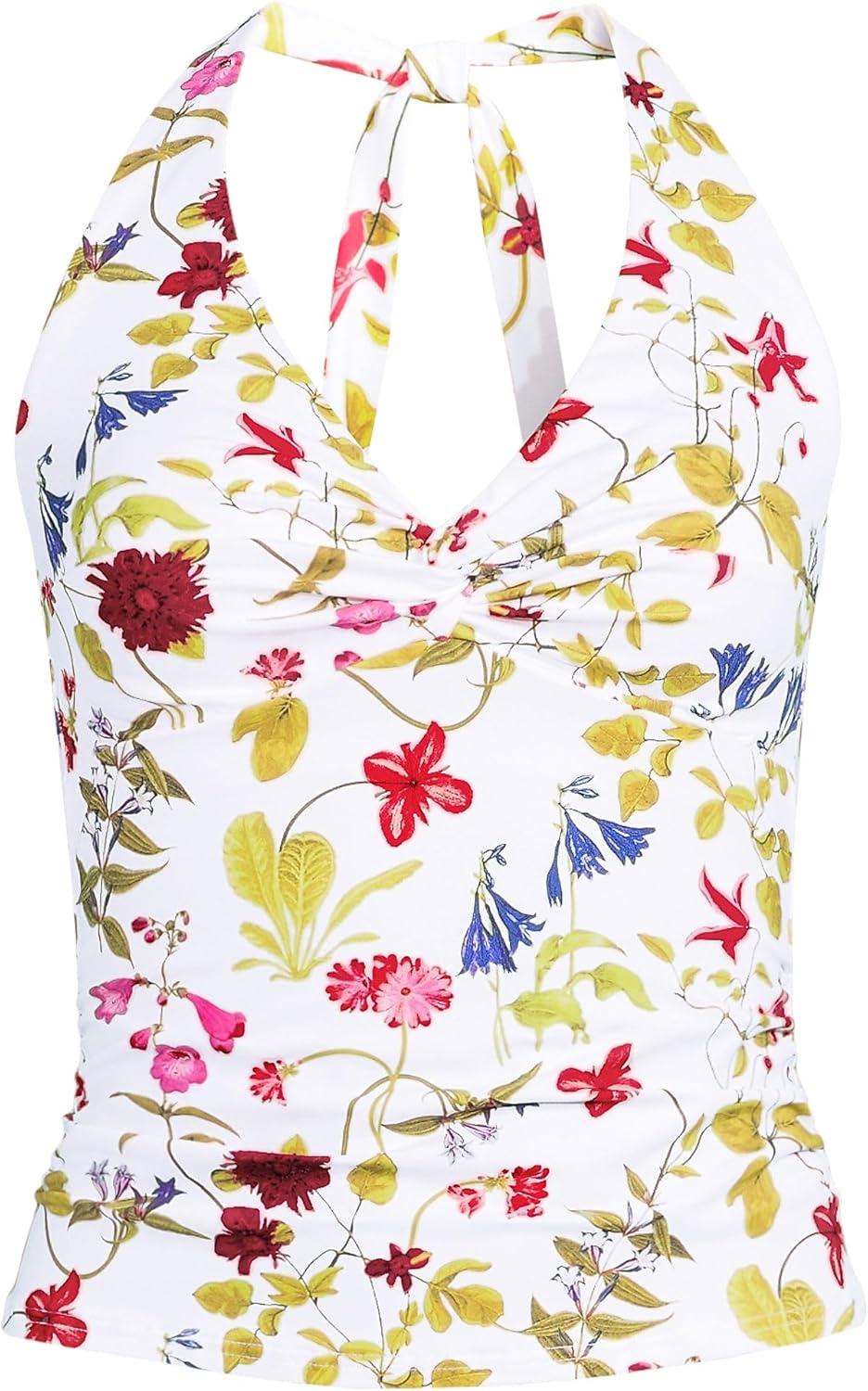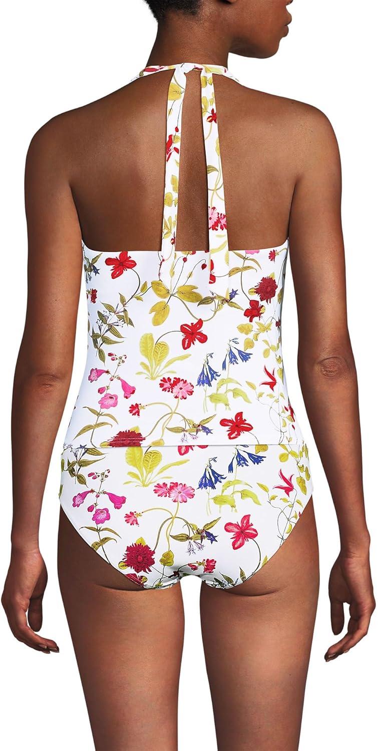 Lands’ End Women’s Twist Halter Tankini Top(White Multi Garden Floral)