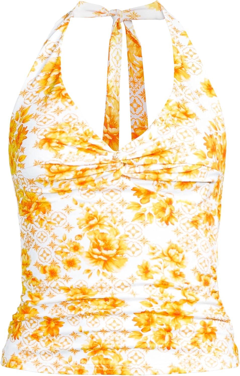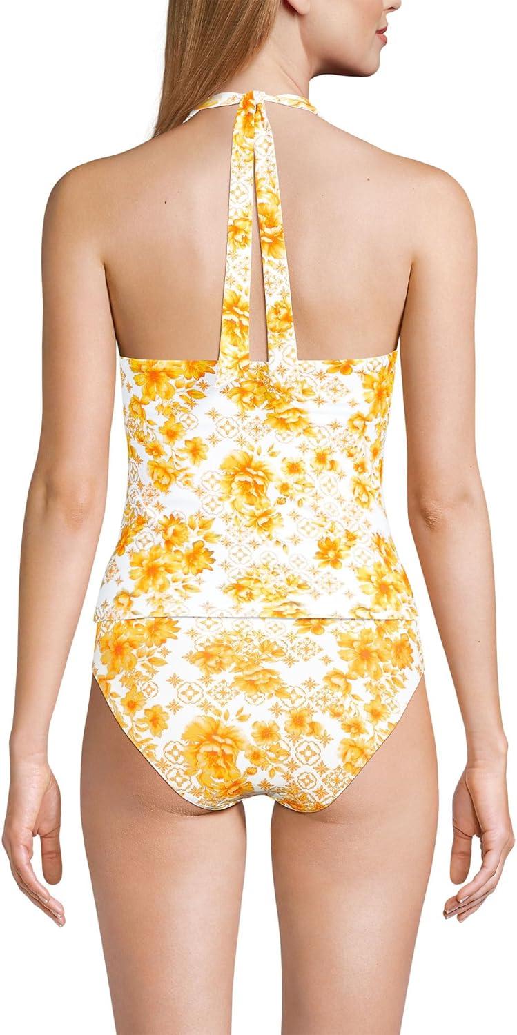 Lands’ End Women’s Twist Halter Tankini Top(Yellow Mosaic Floral)