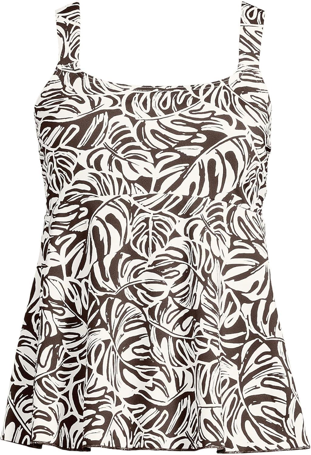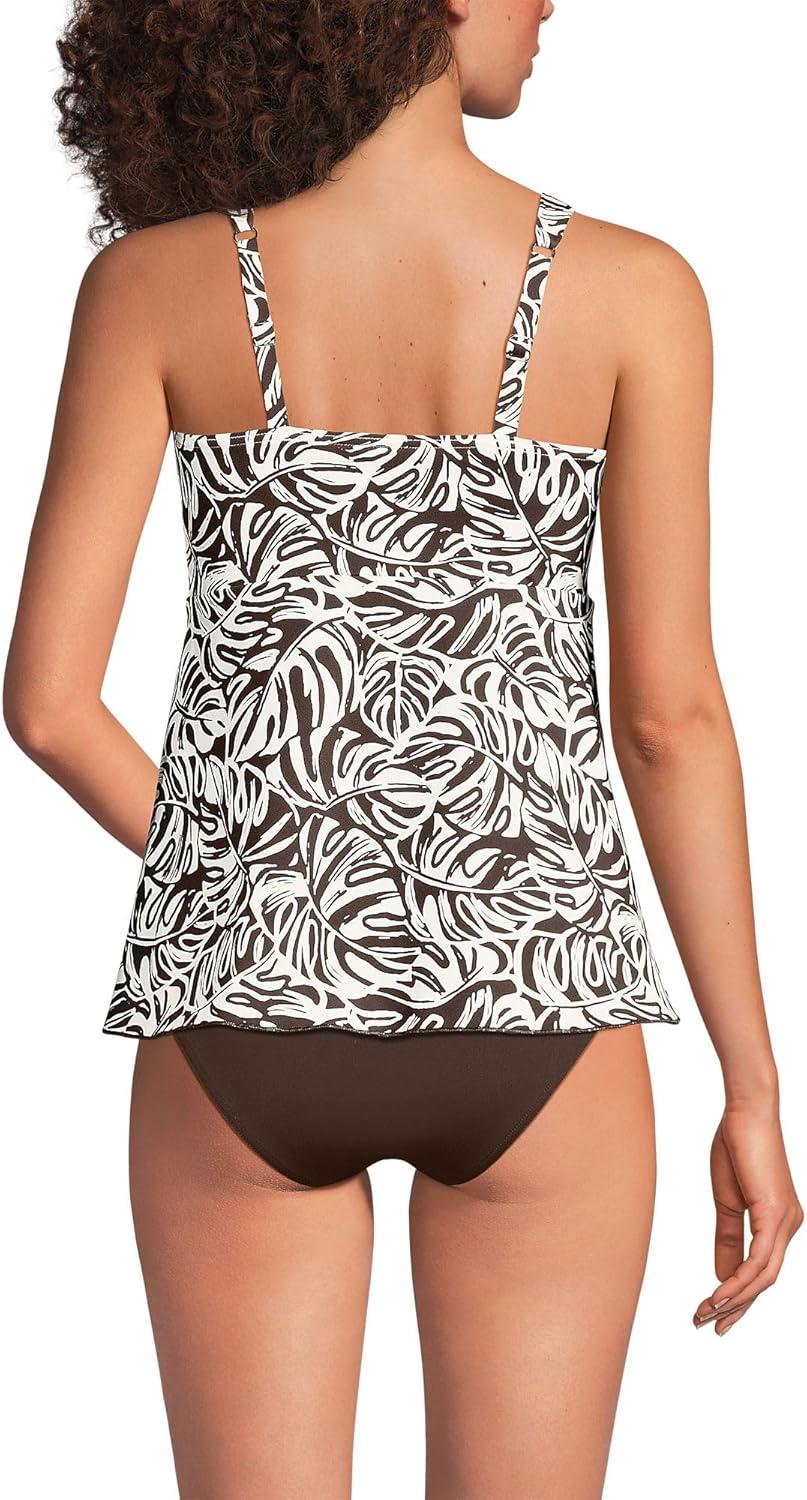 Lands’ End Women’s Adjustable Scoop Neck Flutter Tankini Top(Brown Mini Tropic Leaves)