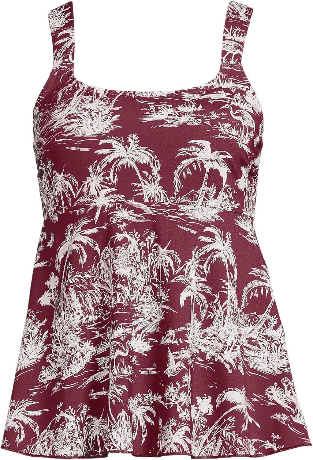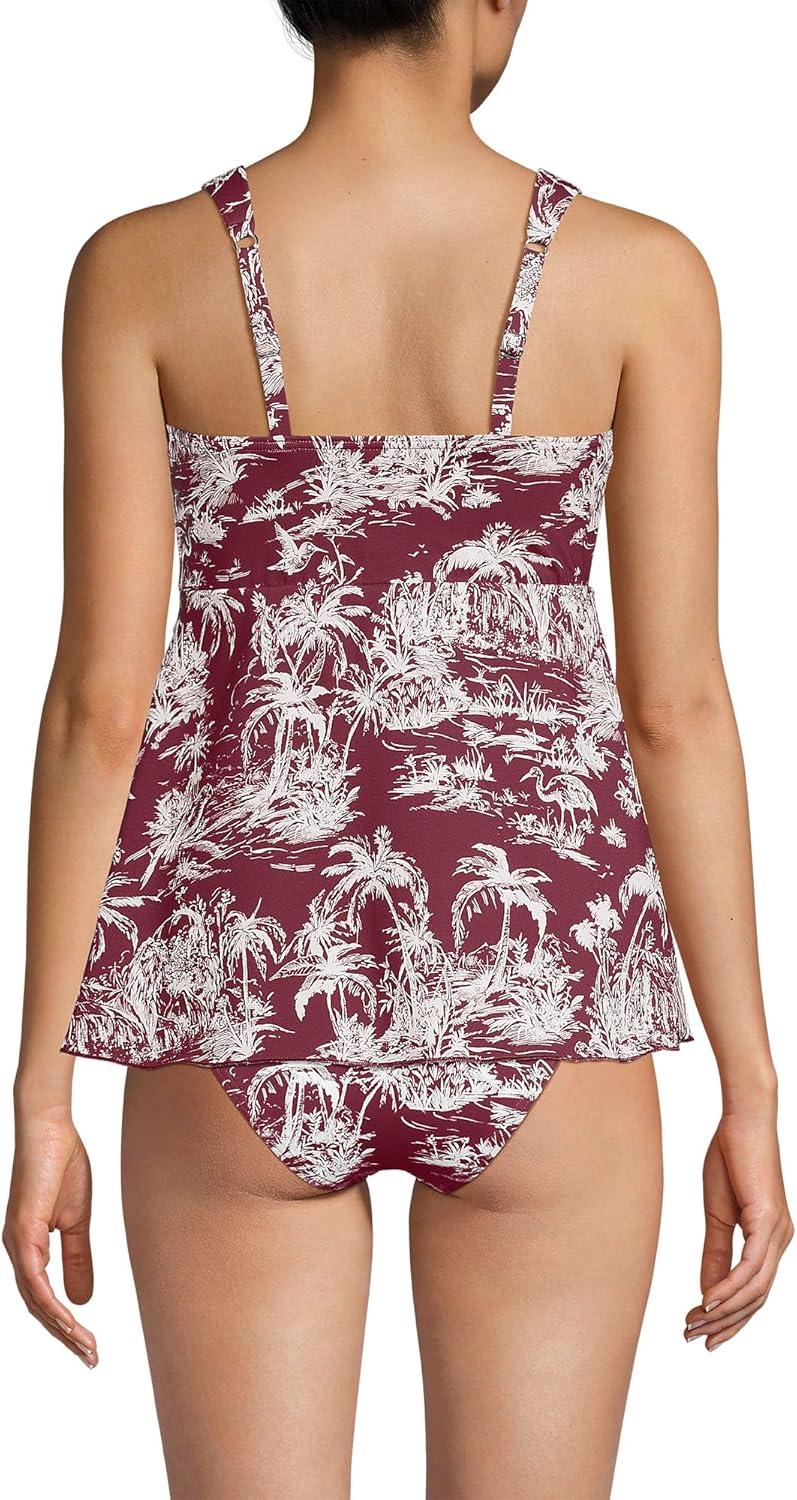 Lands’ End Women’s Adjustable Scoop Neck Flutter Tankini Top(Burgundy Island Scenic)