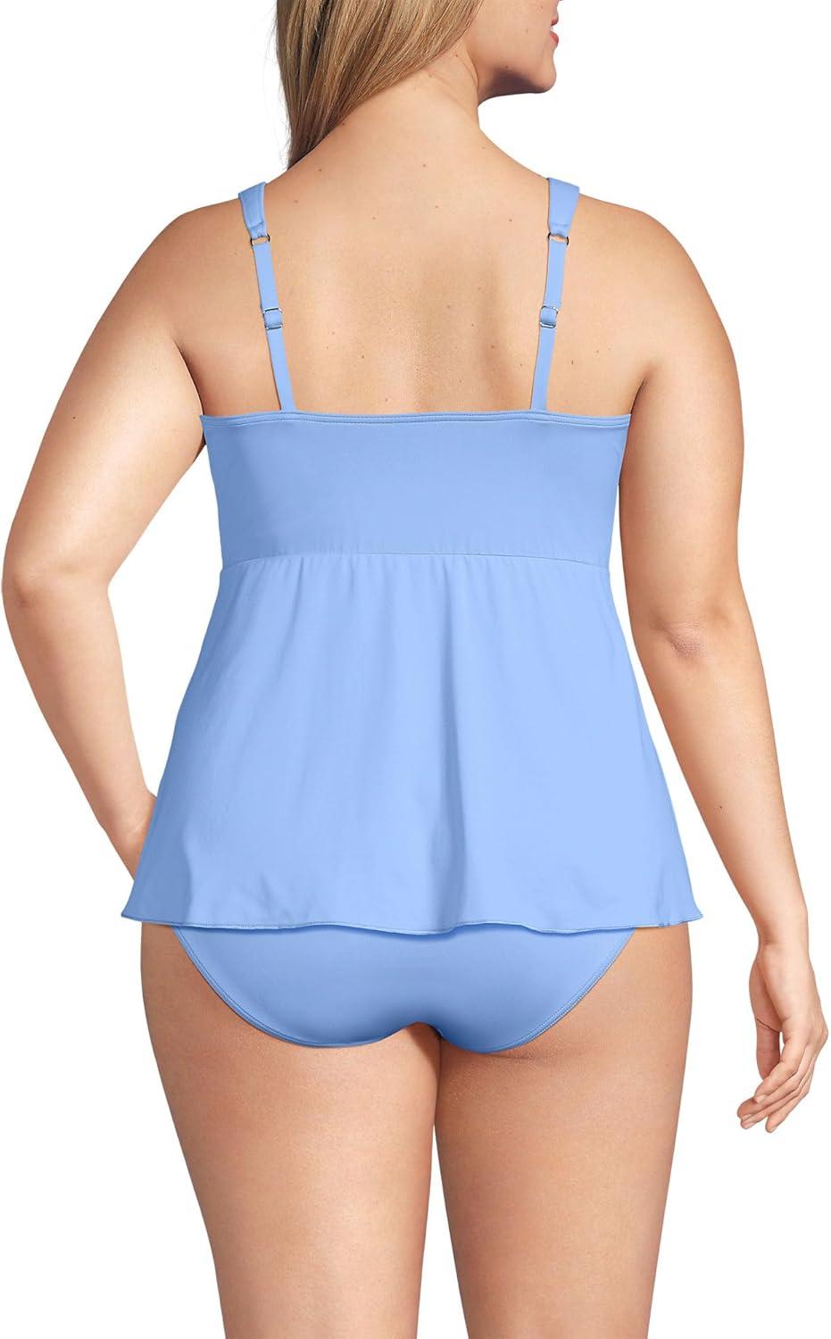 Lands’ End Women’s Adjustable Scoop Neck Flutter Tankini Top(Clear Blue Sky)