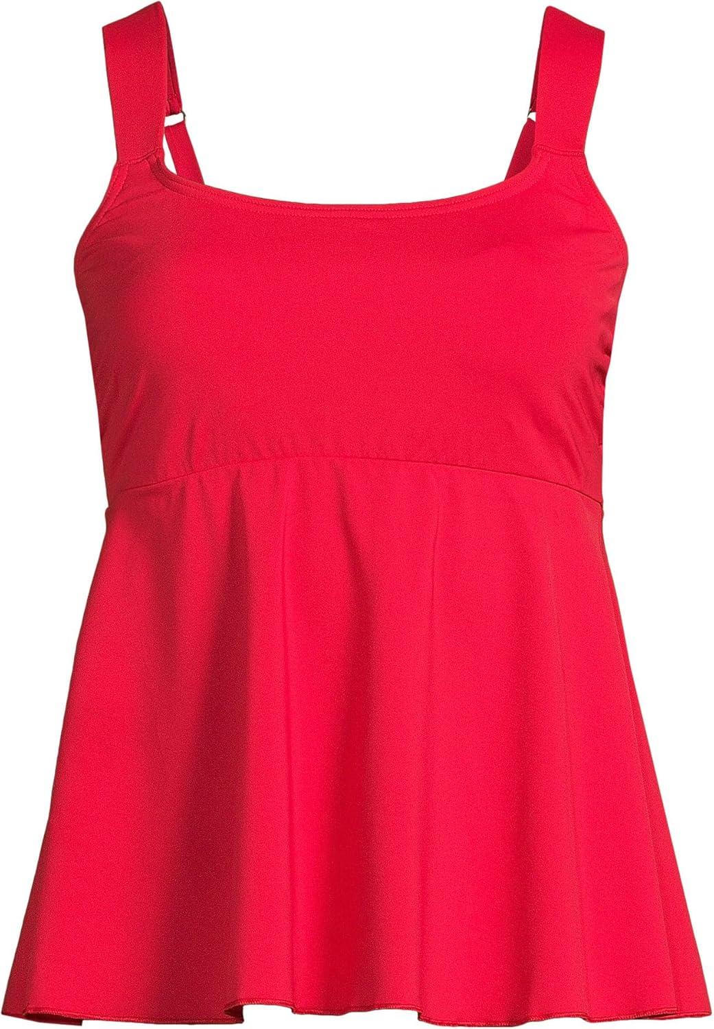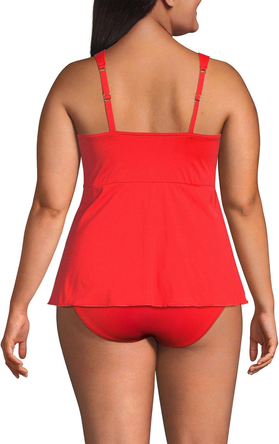 Lands’ End Women’s Adjustable Scoop Neck Flutter Tankini Top(Daylily Red)