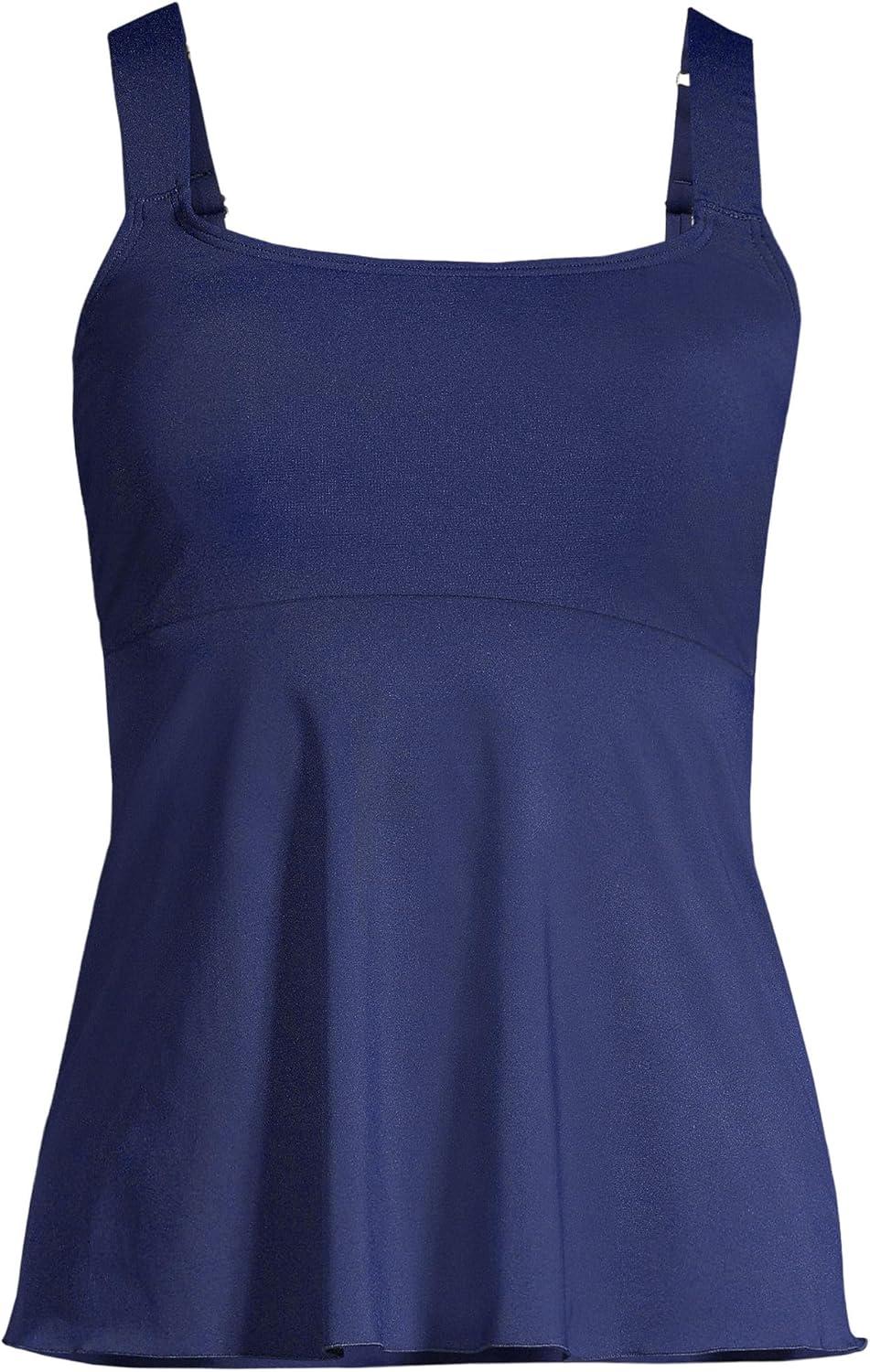 Lands’ End Women’s Adjustable Scoop Neck Flutter Tankini Top(Deep Sea Navy)