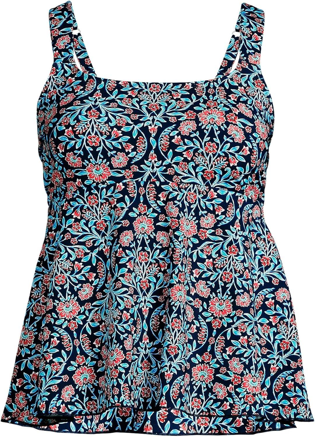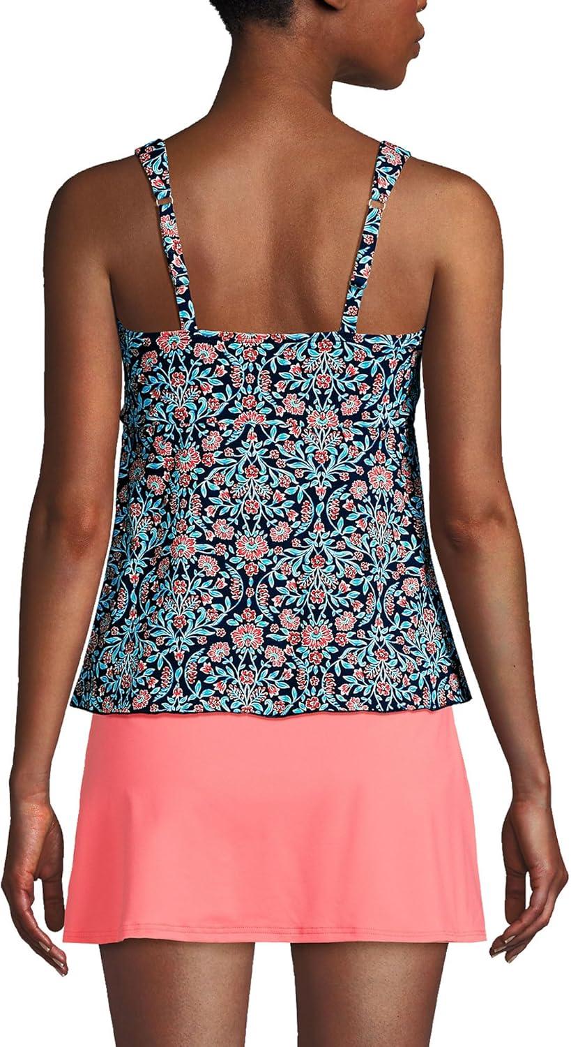 Lands’ End Women’s Adjustable Scoop Neck Flutter Tankini Top(Deep Sea Navy Adorn Floral)