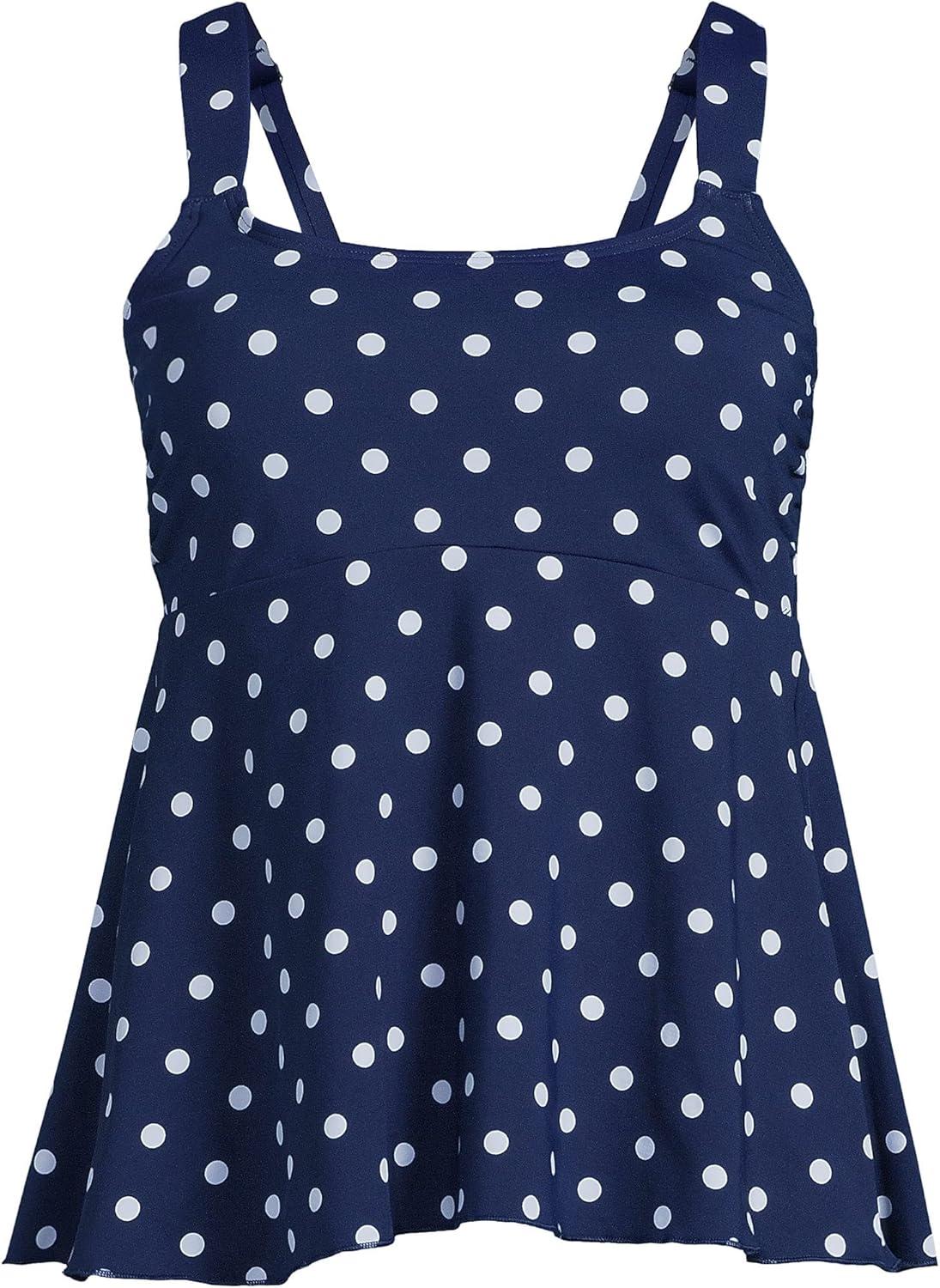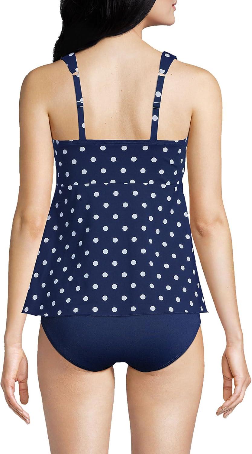 Lands’ End Women’s Adjustable Scoop Neck Flutter Tankini Top(Deep Sea Polka Dot)