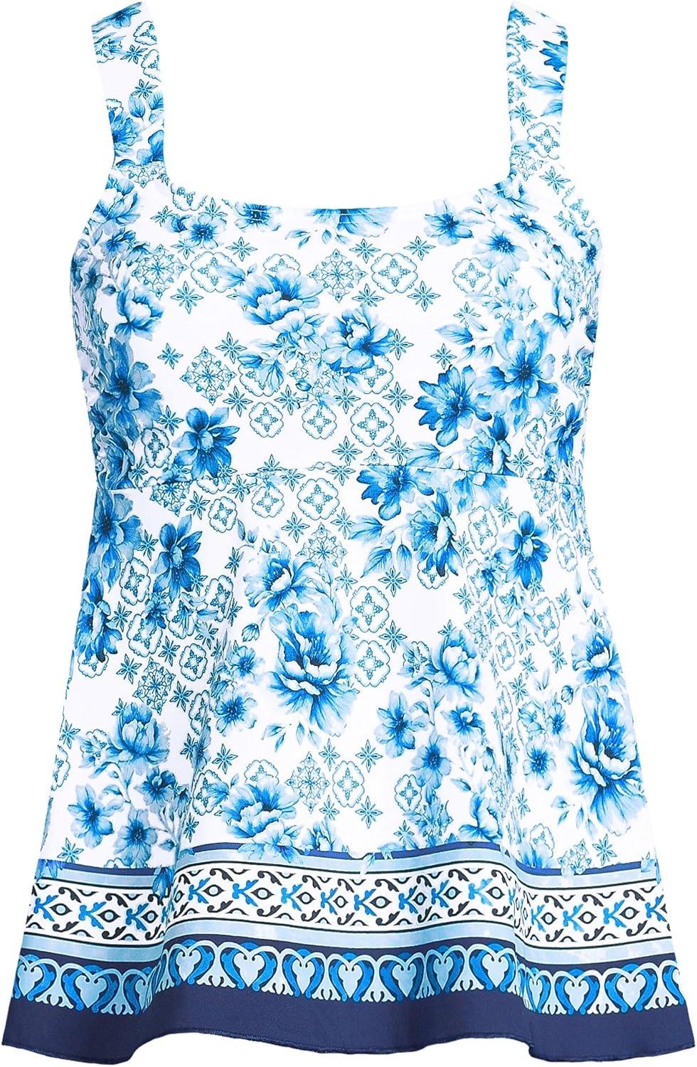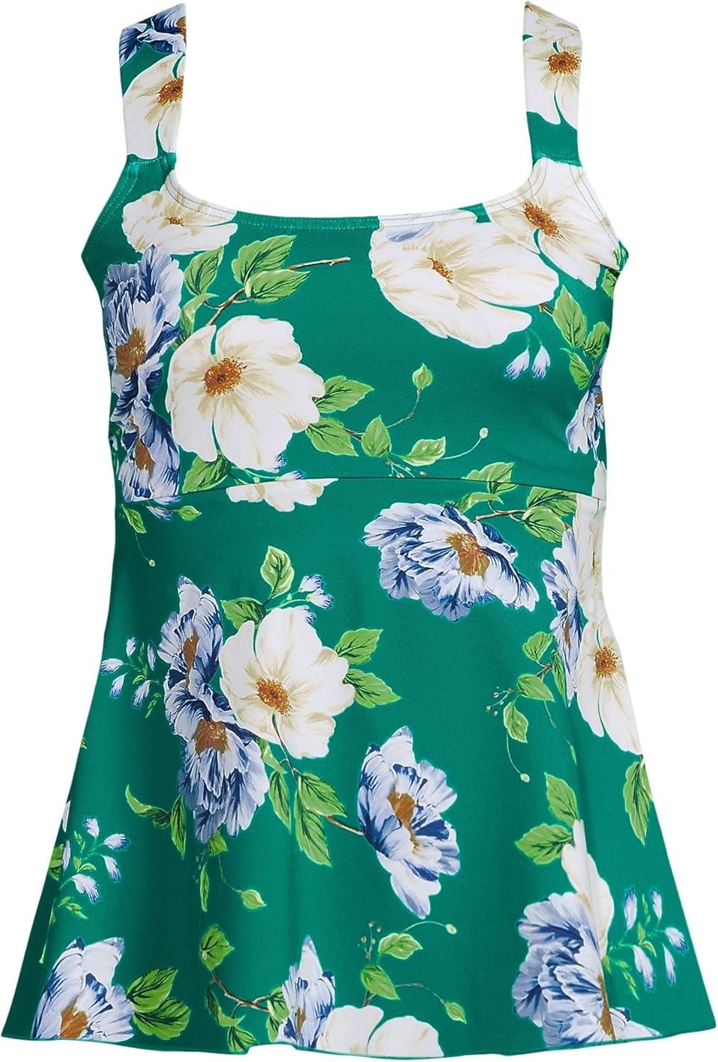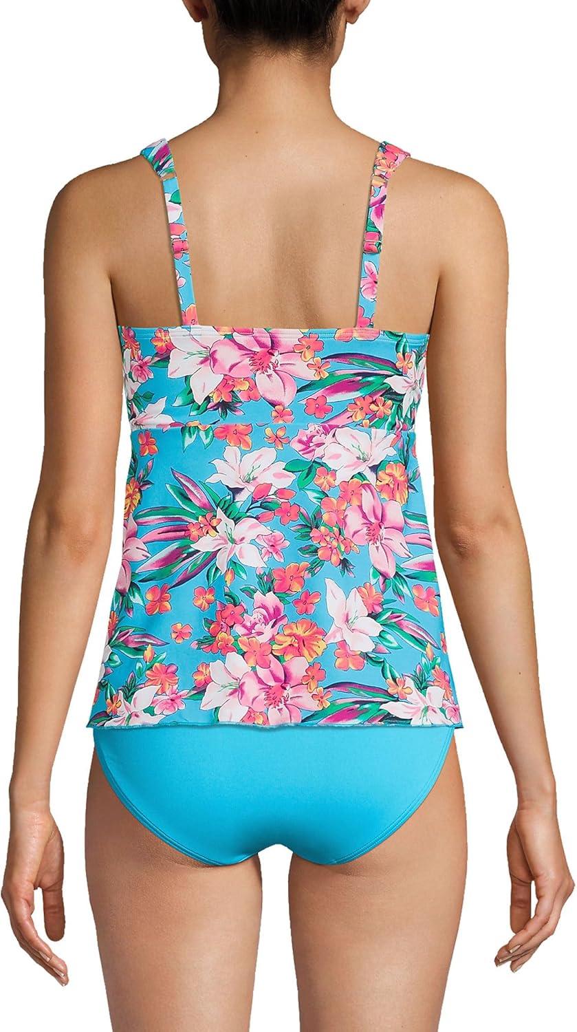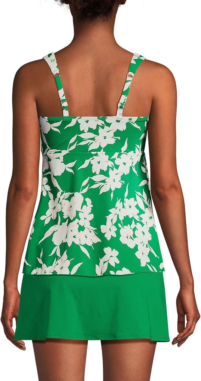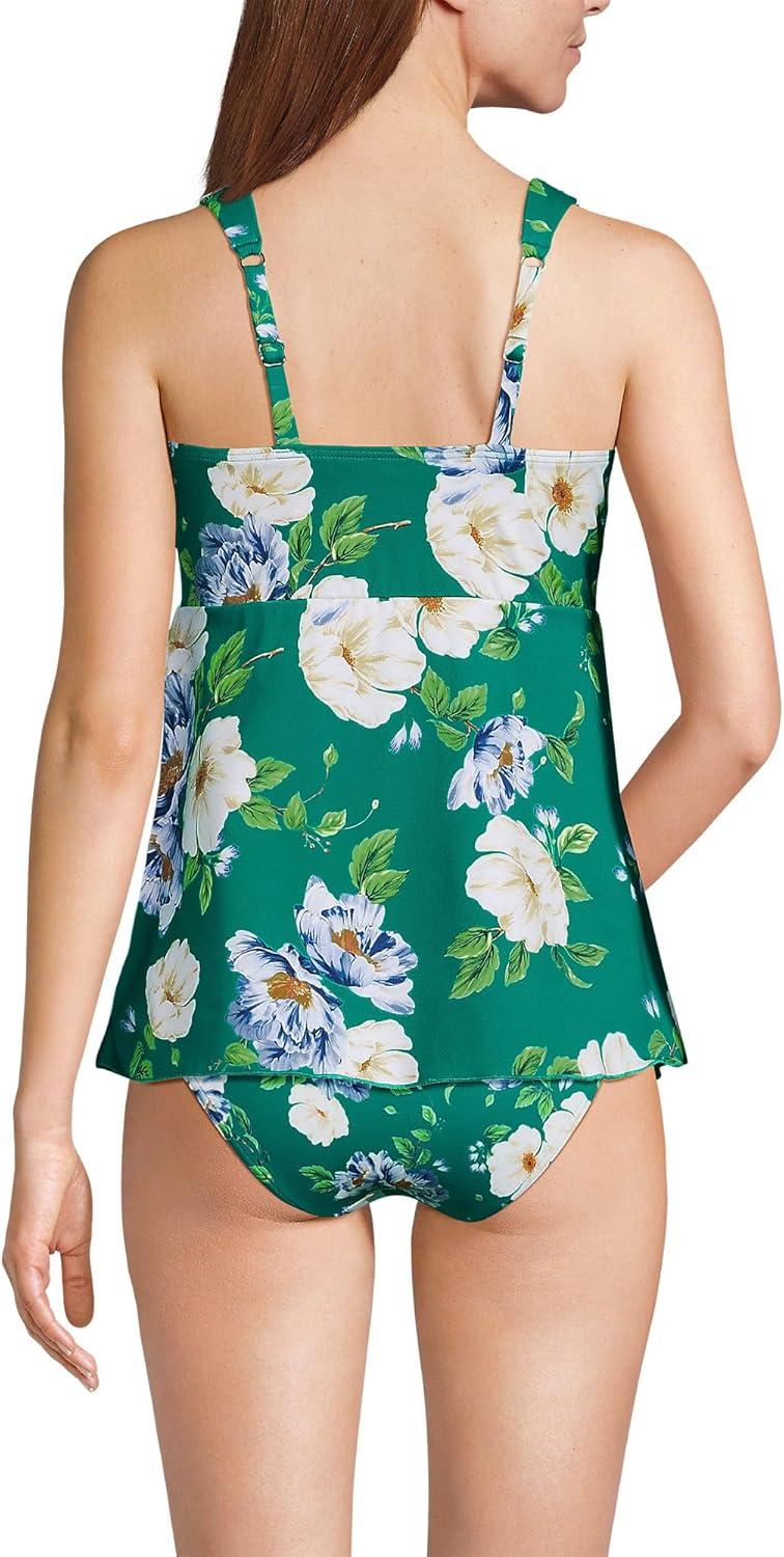 Lands’ End Women’s Adjustable Scoop Neck Flutter Tankini Top(Island Emerald Petunia Floral)