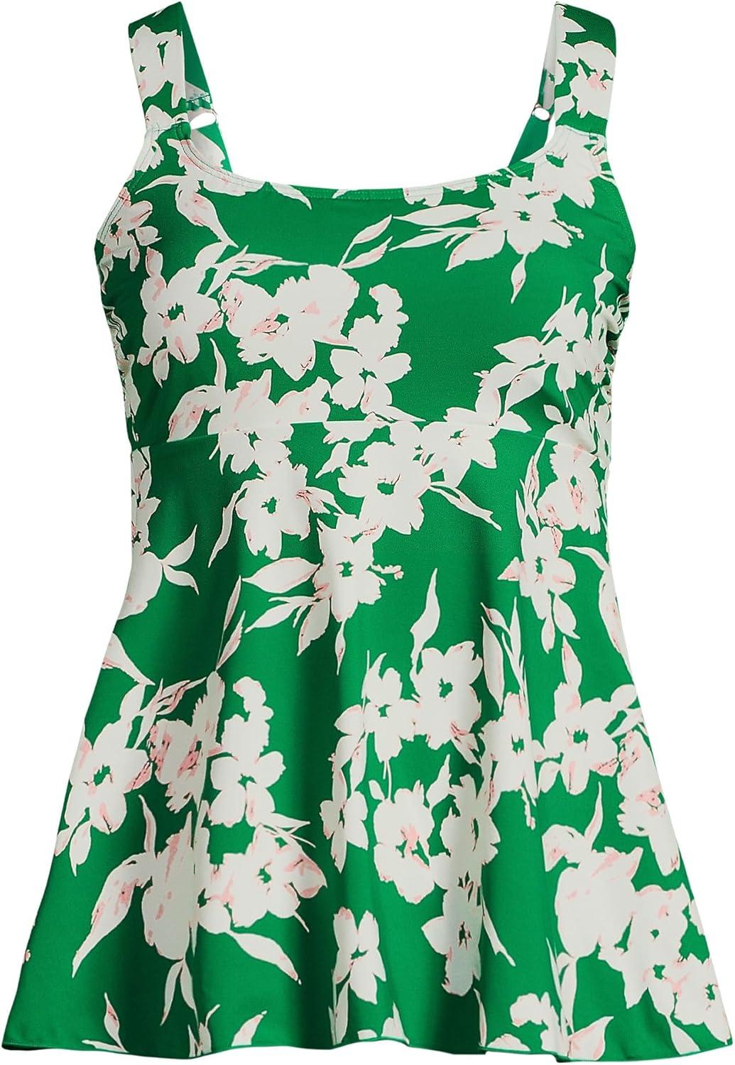 Lands’ End Women’s Adjustable Scoop Neck Flutter Tankini Top(Grass Painted Flower)