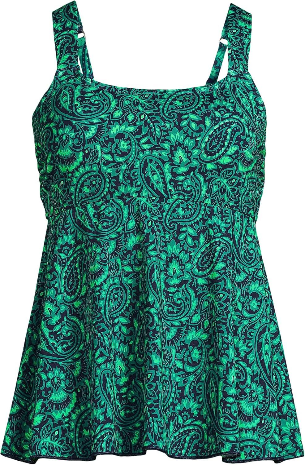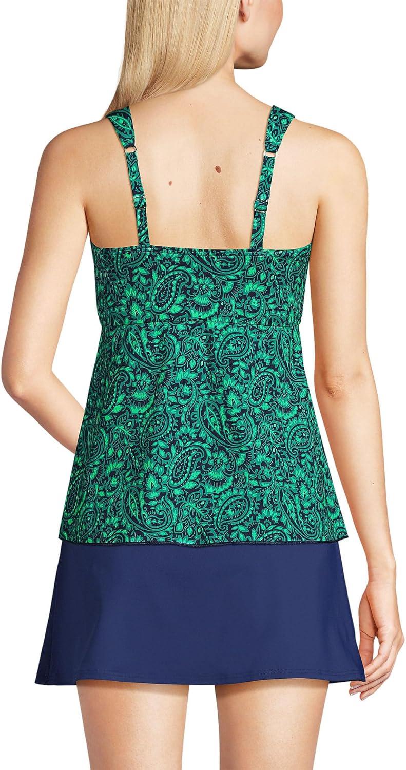 Lands’ End Women’s Adjustable Scoop Neck Flutter Tankini Top(Navy/Emerald Decor Paisley)