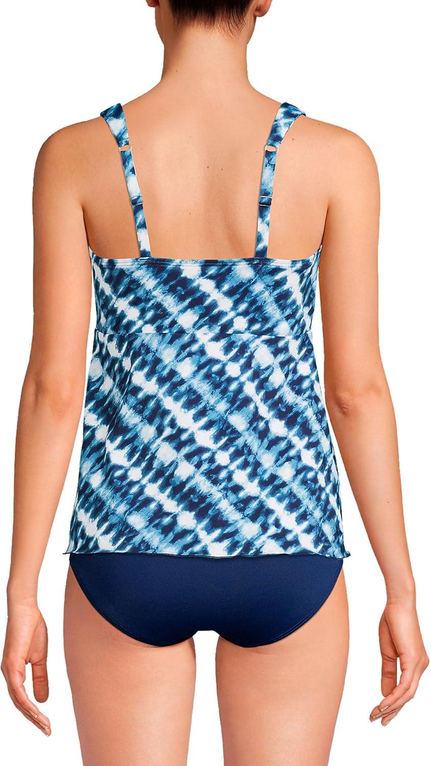 Lands’ End Women’s Adjustable Scoop Neck Flutter Tankini Top(Navy/White Bias Tie Dye)