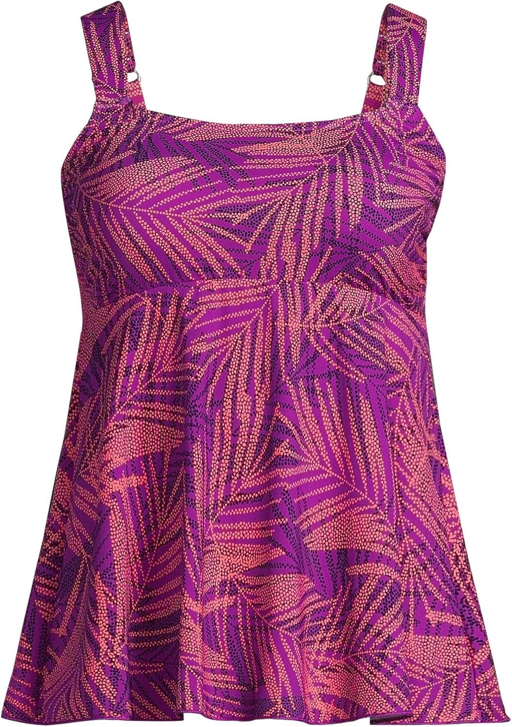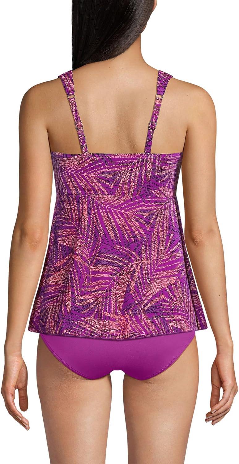 Lands’ End Women’s Adjustable Scoop Neck Flutter Tankini Top(Violet Rose Stipple Palm)