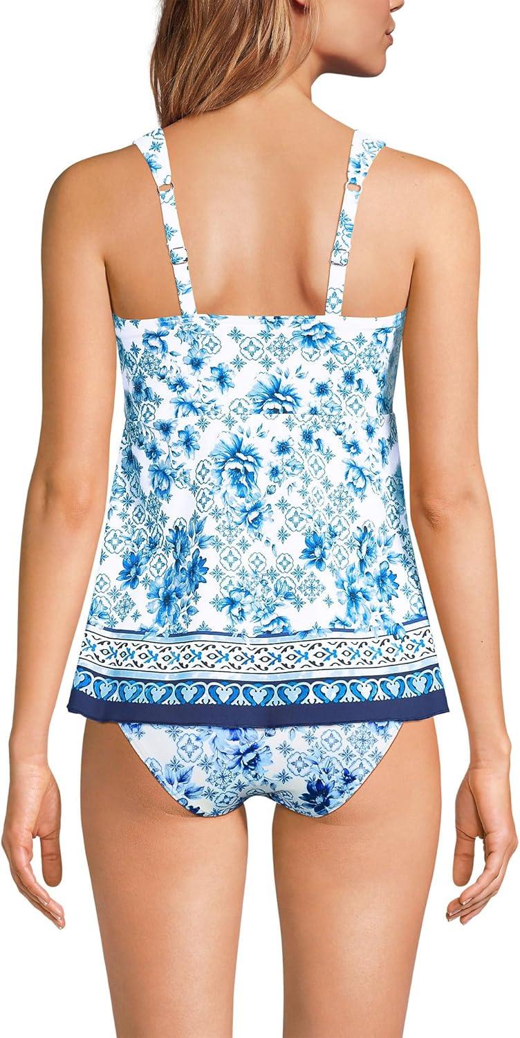 Lands’ End Women’s Adjustable Scoop Neck Flutter Tankini Top(White Mosaic Floral Geo Border)