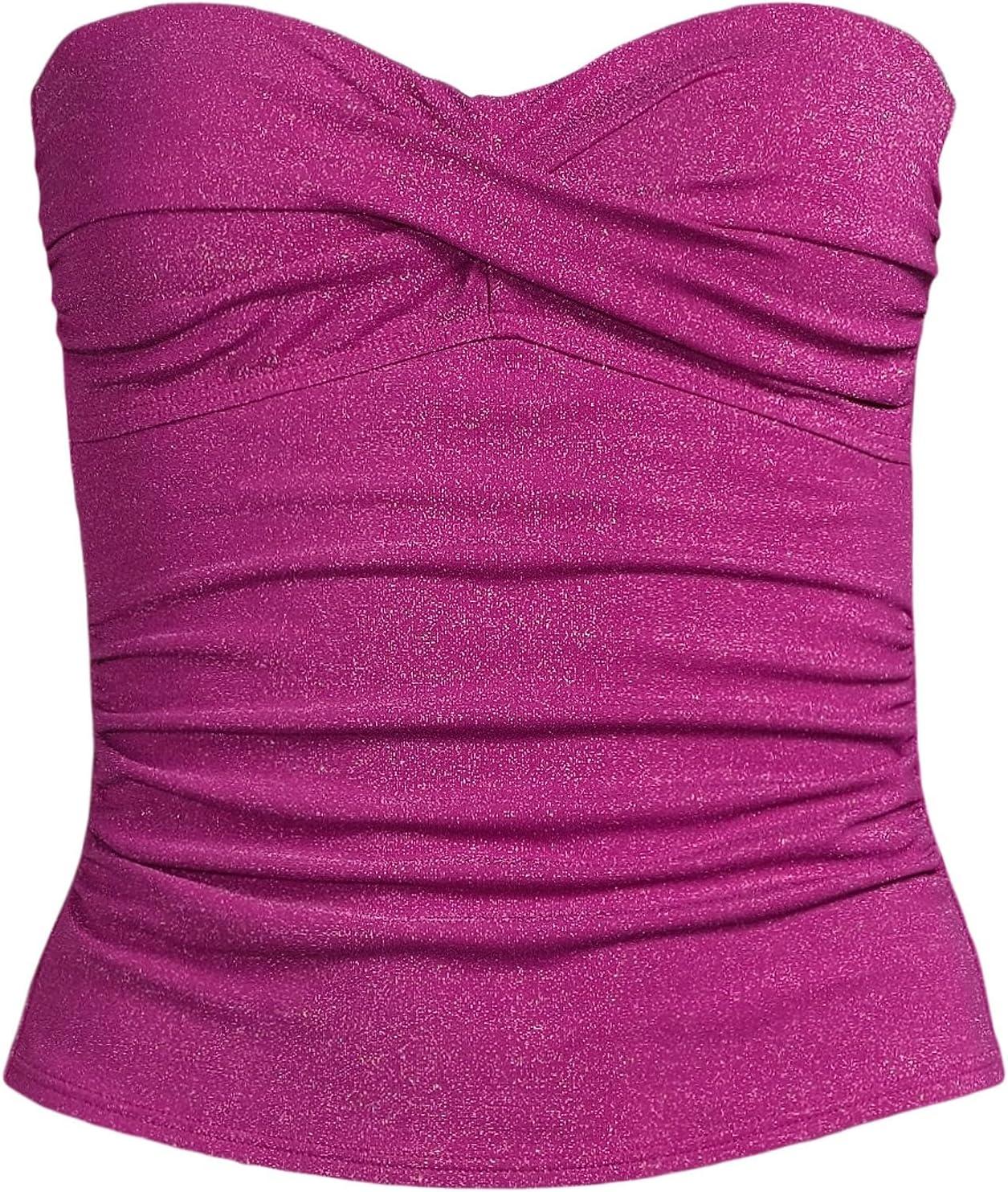 Lands’ End Women’s Bandeau Tankini Swimsuit Top(Bright Magenta Shine)