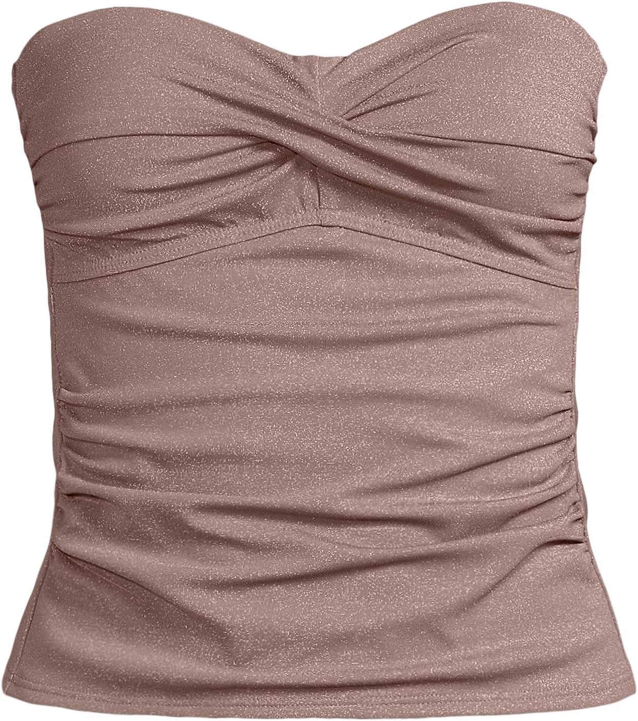 Lands’ End Women’s Bandeau Tankini Swimsuit Top(Bronze Sand Shine)