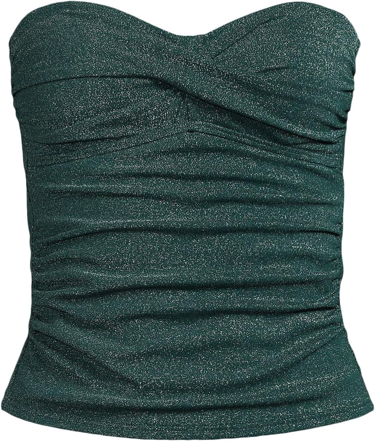 Lands’ End Women’s Bandeau Tankini Swimsuit Top(Deep Balsam Shine)