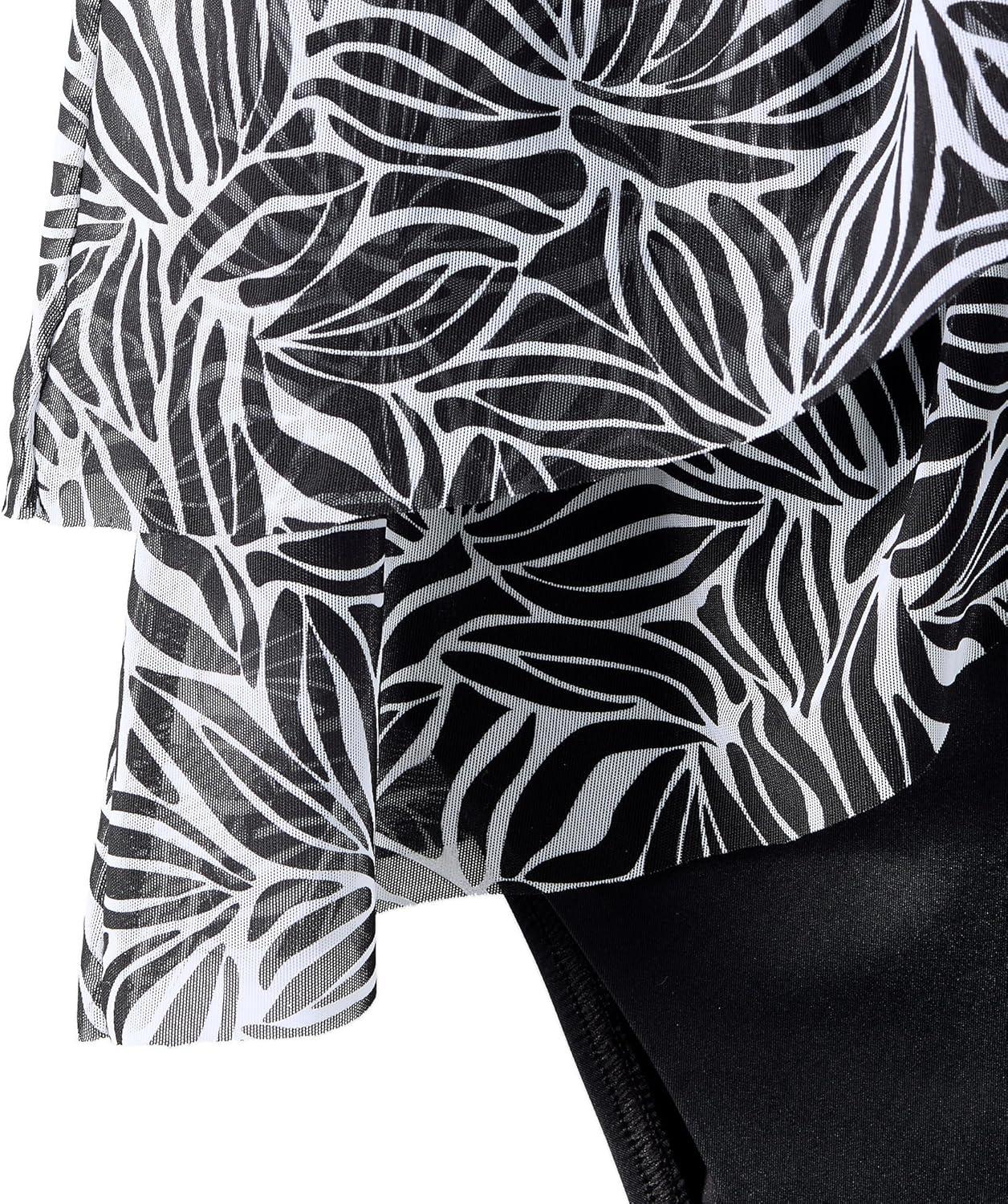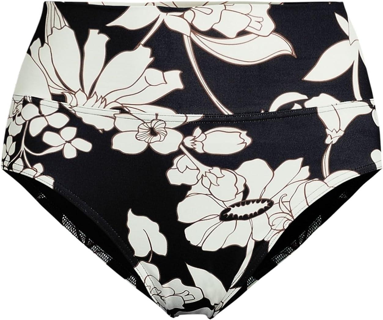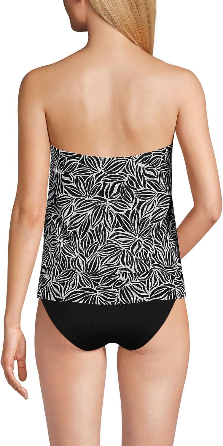 Lands’ End Women’s Chlorine Resistant Mesh Bandeau High Leg Fauxkini One Piece Swimsuit(Black/White Abstract Floral)