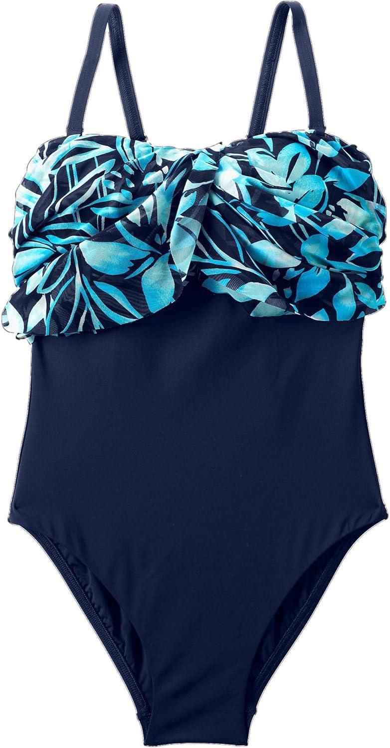 • Lands’ End Women’s Chlorine Resistant Lace Up One Piece Swimsuit(Deep Sea Navy Painted Floral)