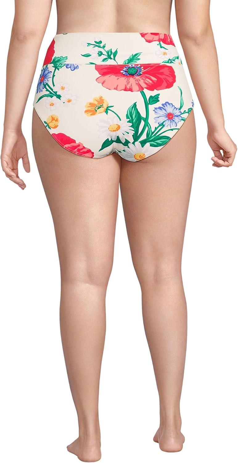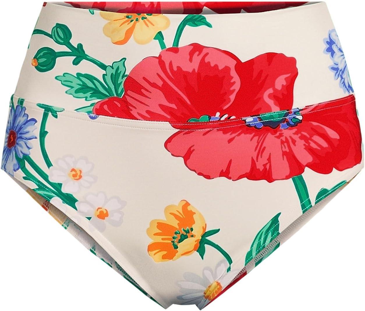 Lands’ End Women’s Chlorine Resistant Pinchless High Waisted Bikini Bottoms(Egret/Poppy Floral)