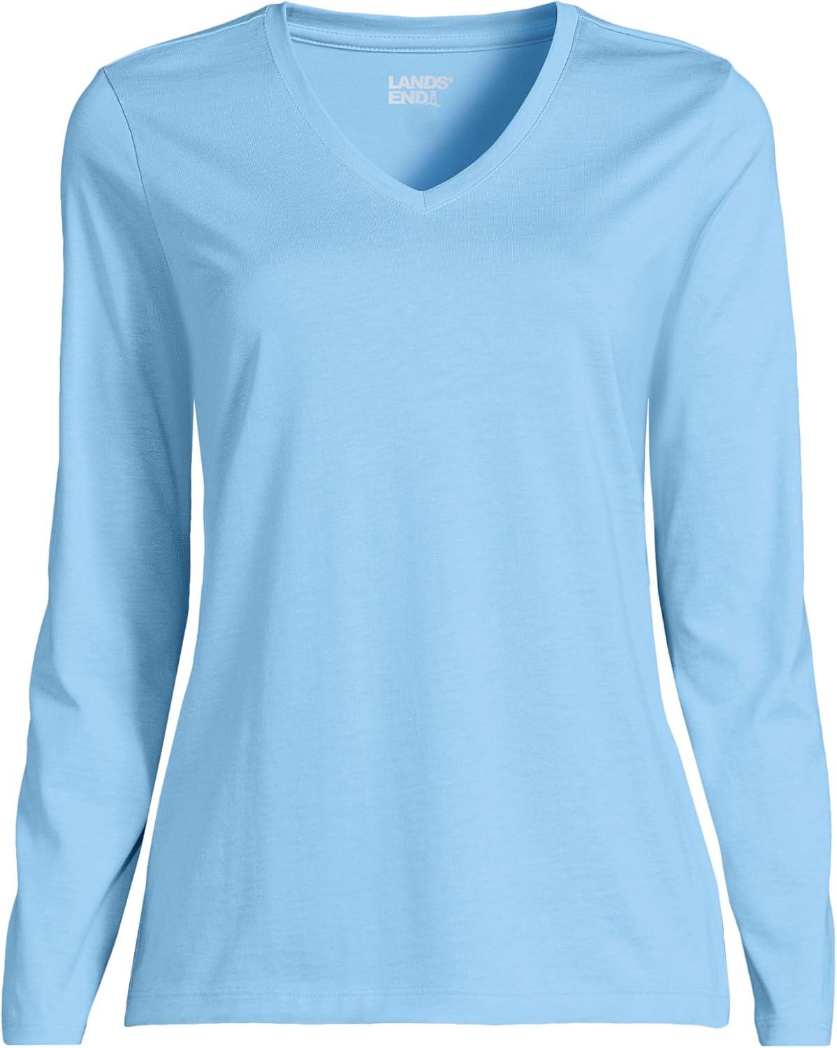Lands’ End Women’s Relaxed American-Grown Supima Cotton Long Sleeve V-Neck T-Shirt(Clearlake Blue)