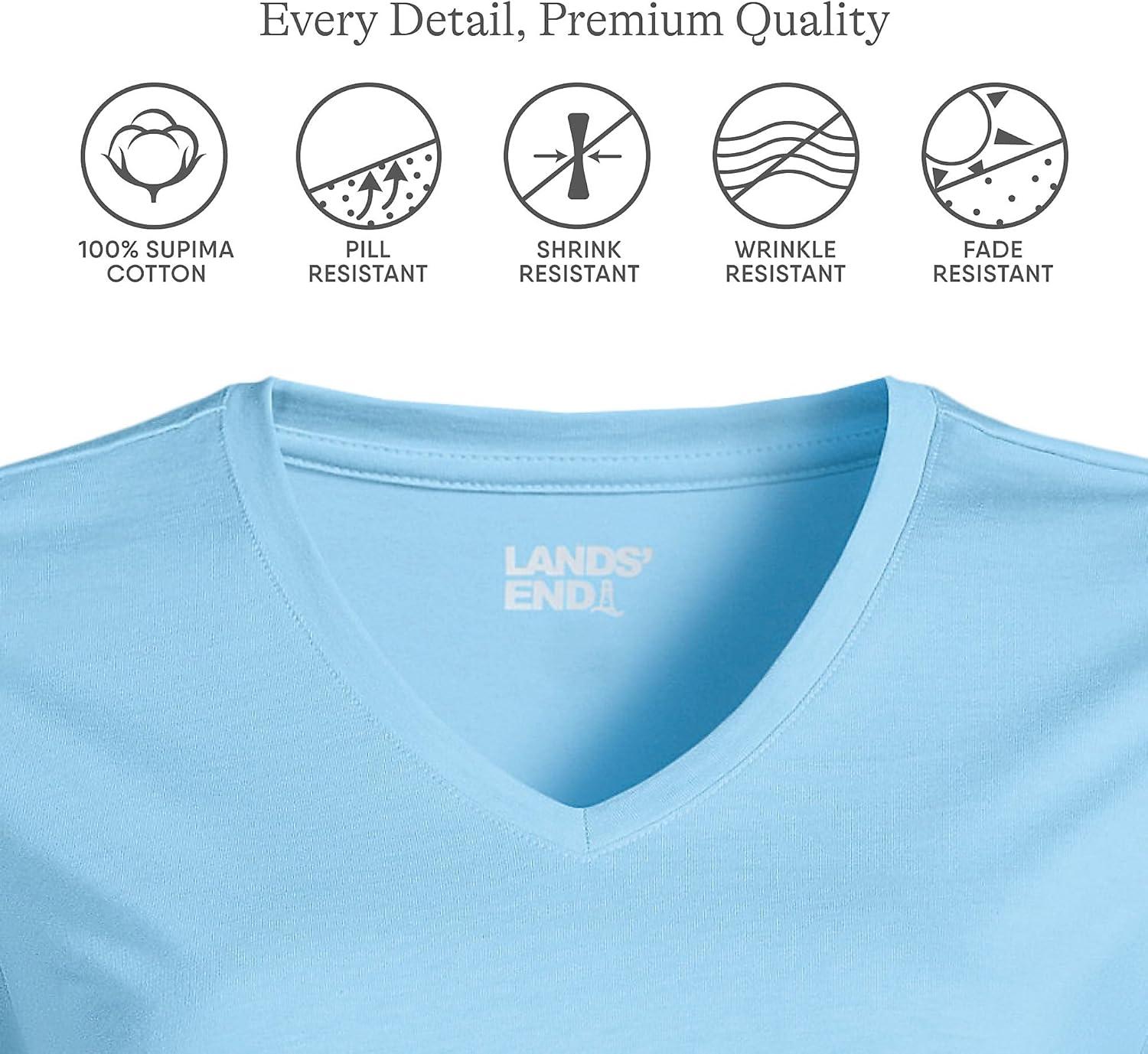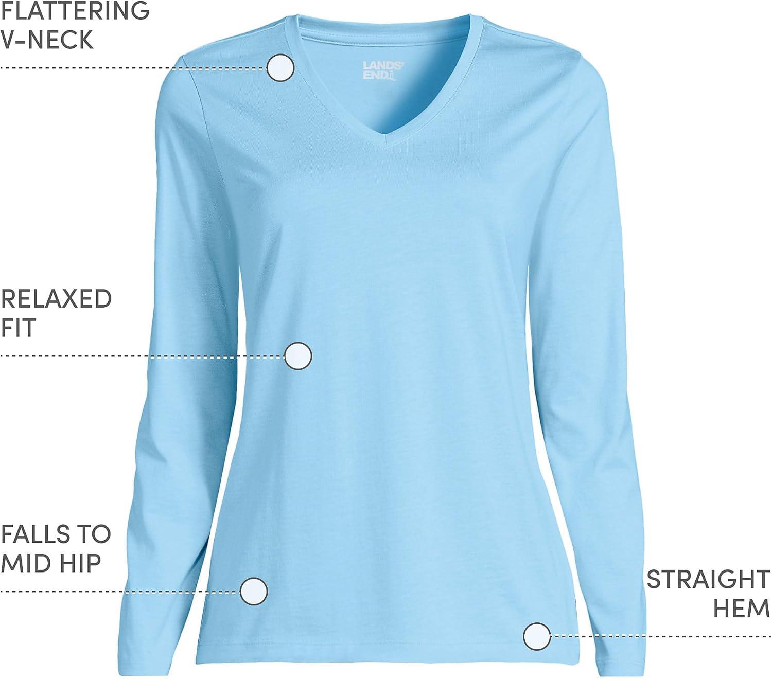 Lands’ End Women’s Relaxed American-Grown Supima Cotton Long Sleeve V-Neck T-Shirt(Bermuda Blue)