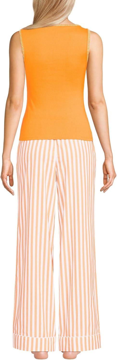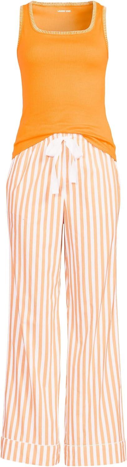 Lands’ End Women’s Knit Cotton Poplin 2 Piece Pajama Set – Tank Top and Pants(Sweet Mango Stripe)
